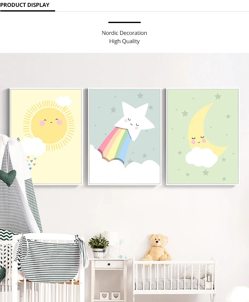 Цветной постер для детской комнаты, луна, солнце, облако, звезда, милый Декоративный принт, фотография детской комнаты в скандинавском стиле, декор детской комнаты