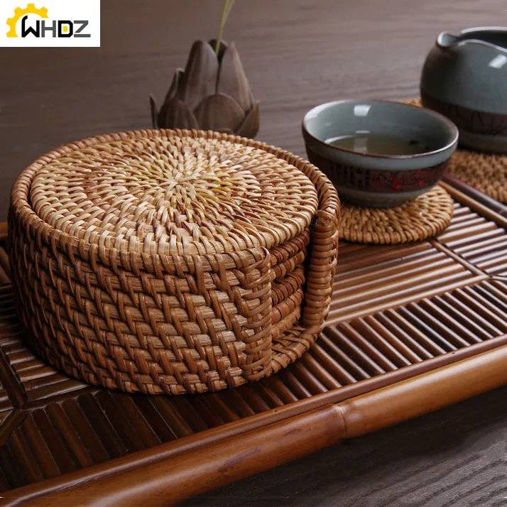 6 шт.набор подстаканников для чая Kungfu, аксессуары для чая, круглый коврик для посуды, коврик из ротанга, коврик для чашки, диаметр 8 см