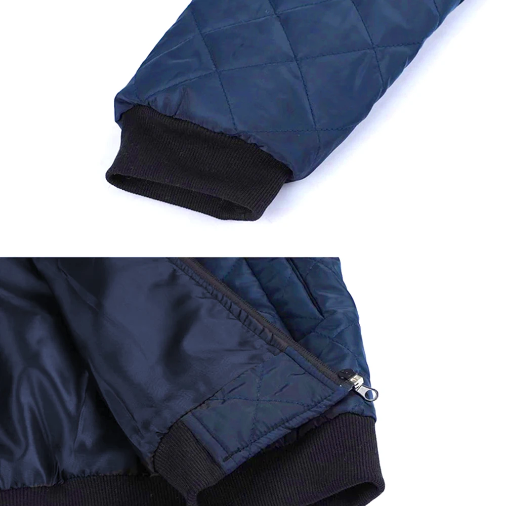 [Особенности] ----- застежка-молния, длинный рукав, зауженный крой. Удобная и теплая трикотажная стеганая подкладка. Стеганые модели со стразами. Ребристый эластичный воротник, манжеты и подол. Два кармана по бокам, один карман на руку и один внутренний карман, однотонный дизайн.