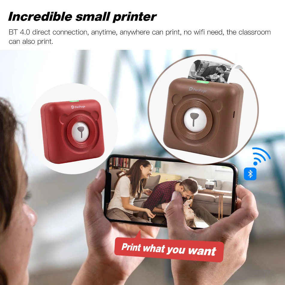 Стиль мультишрифтов, эффект мультифильтра, невообразимо маленький карманный принтер с индивидуальным шаблоном, черно-белая версия polaroid с батареей внутри, прямое подключение BT.