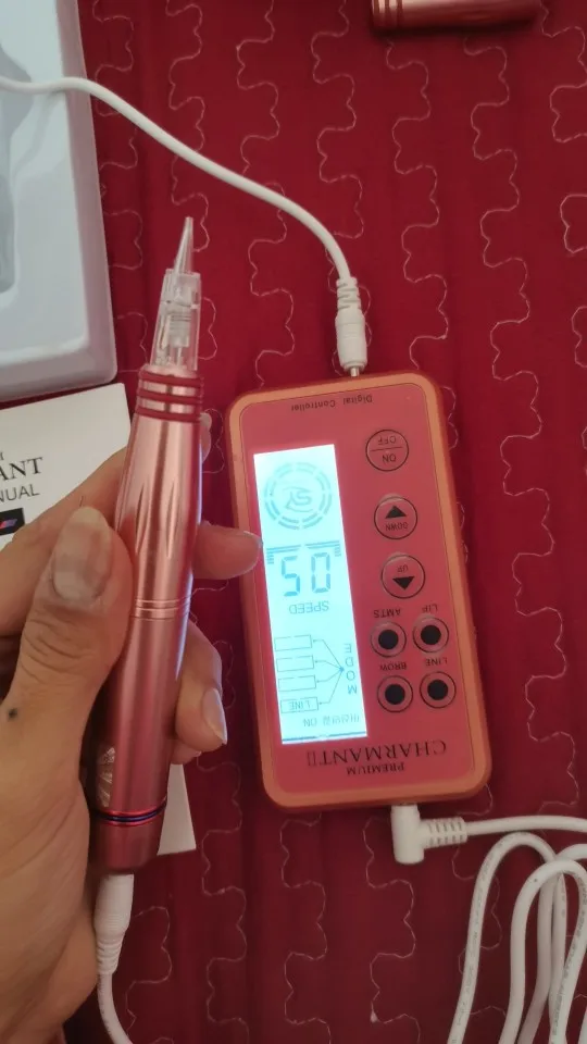 Иглы не подходят к этой машинке . Заказывала все у одного продавца . Насадки слишком большие . Продавец был не очень сговорчив , спор шёл до тех пор , пока не вмешался алиэкспресс . Вернули пол стоимости . Провод короткий , работать неудобно ,Пришло быстро , трек отслеживался .Не считая этого , все работает хорошо