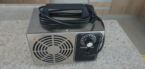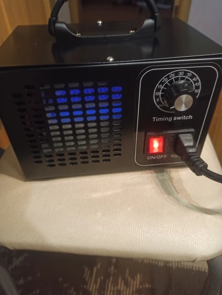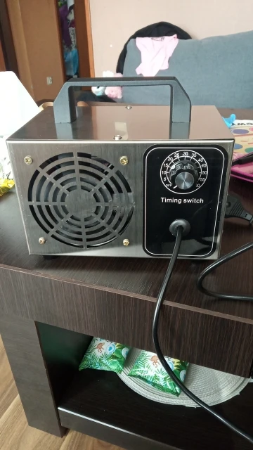 Генератор соответствует описанию, правда таймер включается только с цифры 10 на делениях шкалы. Генератор включается на работу просто нажатием клавиши Пуск даже не трогая таймер, отключает ли таймер аппарат не проверял. Является ли он генератором озона, сказать не берусь, запах появляется точно такой же как при воздействии ультрафиолетовой лампы. Пластины внутри светятся светло-фиолетовым цветом и через них вентилятор прогоняет воздух.