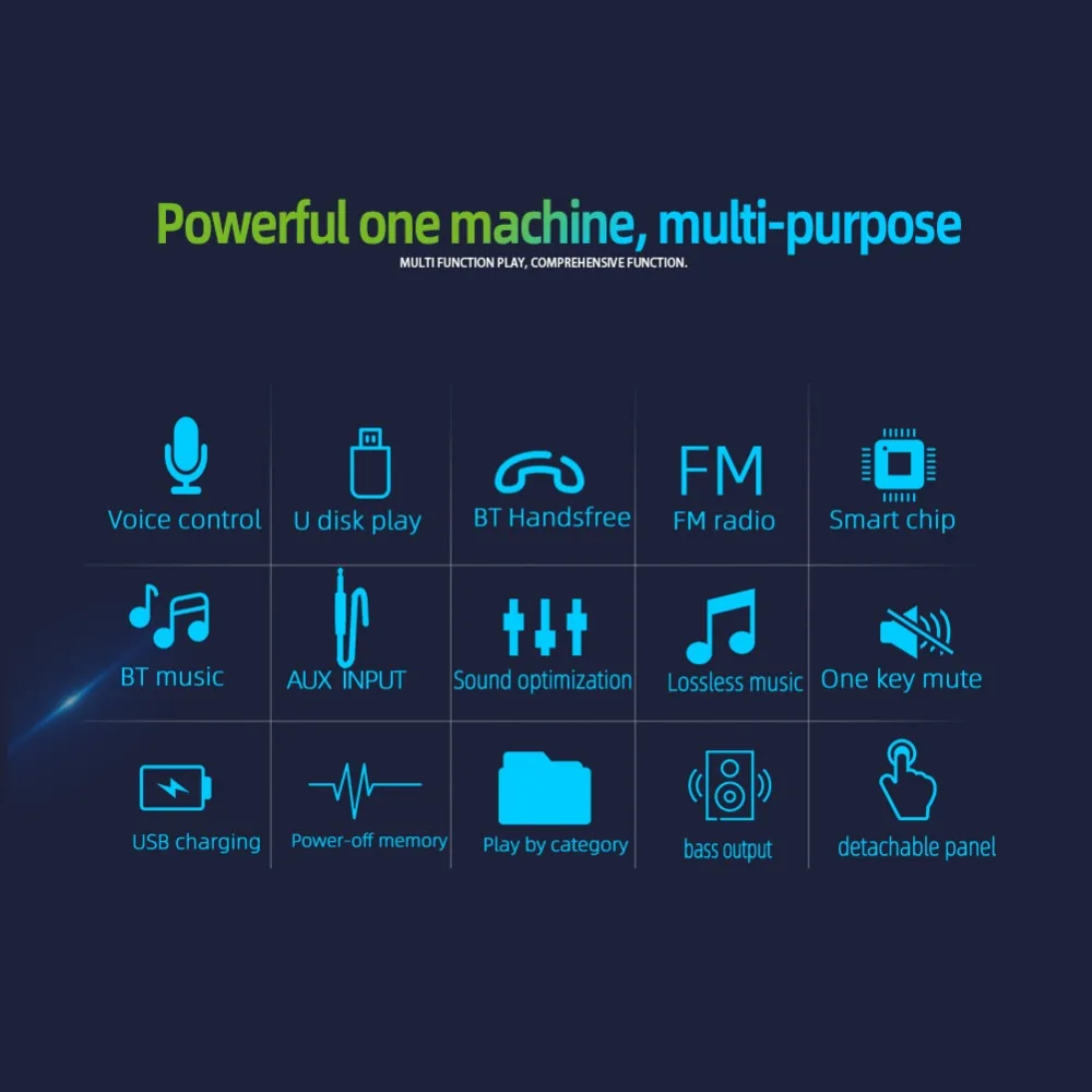 1DIN 2,5 дюймов 12 В в-тире стерео голосовое дистанционное управление Съемная панель Bluetooth авторадио FM USB AUX-IN MP3 мультимедийный плеерХарактеристика:1. Встроенный Bluetooth + микрофон;2. Беспроводные звонки;3. Голосовое управление;4. Поддержка расширенного режима передачи звука;5. Поддержка индикации часов при выключении;6. Высококачественное цифровое стерео fm-радио;7. Поддержка трехдиапазонного FM1-FM2-FM3 для хранения радио, 18 радиостанций могут быть настроены. (Радиочастота: 87,5-108 МГц)8. Поддержка USB/картридера;9. Поддерживает аудио форматы, такие как MP3/WMA/WAV;10. Поддержка функции воспроизведения папок;11. Поддержка дистанционного управления;12. Поверните регулятор громкости;13. Воспроизведение MP3 поддерживает пауза/предварительный просмотр/повтор/случайное воспроизведение и выбор вверх/вниз 10 треков;14. Электронные басы/высокие частоты/баланс влево и вправо/контроль громкости переднего и заднего баланса;15. Входное отверстие переднего AUX аудио и выходное отверстие заднего разъема L/R аудио RCA;16. 4-канальный высокомощный выход (4 высокомощные колонки).