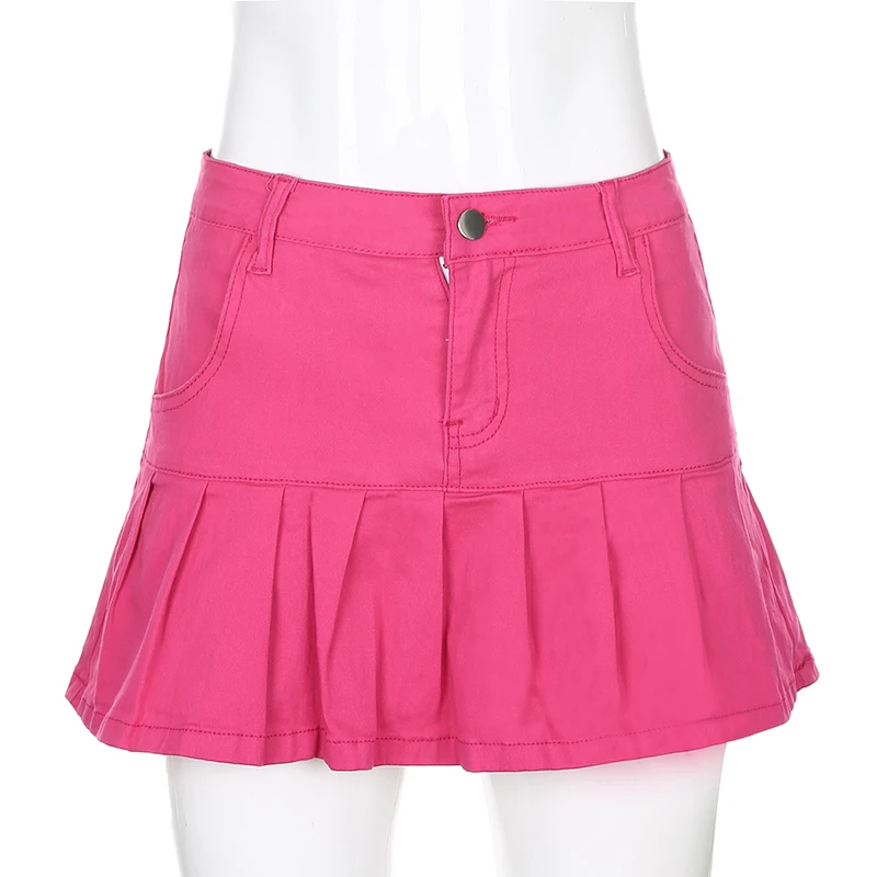 Y2k розовые джинсовые плиссированные мини-юбки, однотонные повседне...