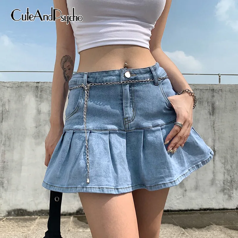 HOMOPHONY плиссированные мини-юбки стиле Харадзюку Y2K Джинсовые юб...