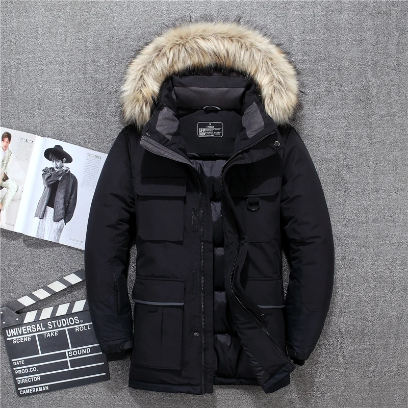 Высококачественный толстый ветрозащитный мужской пуховик с меховым ...