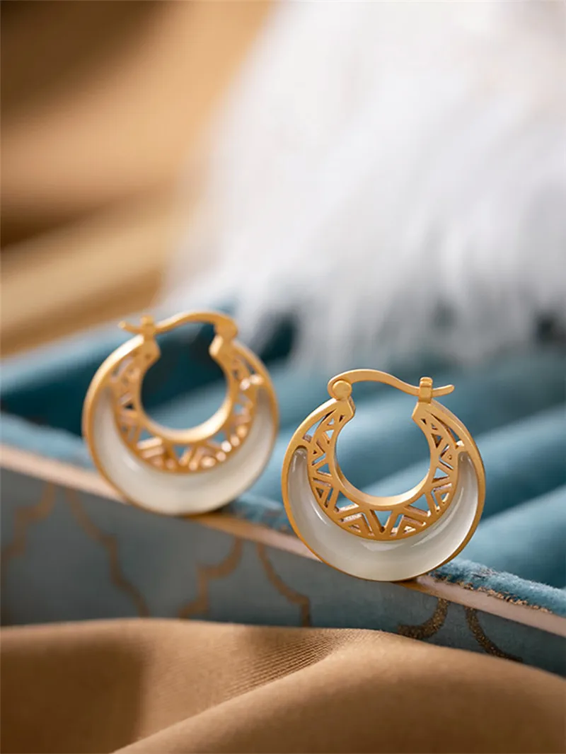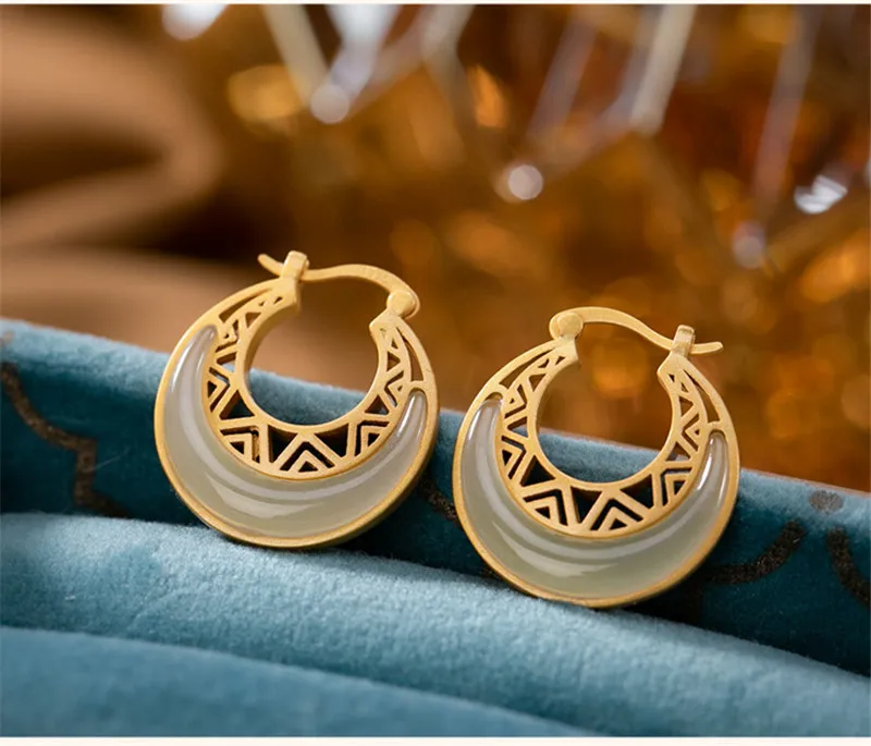 V.YA личность S925 серебро в форме Луны серьги женские ювелирные изделия натуральный нефрит камень серьги простые ювелирные изделия