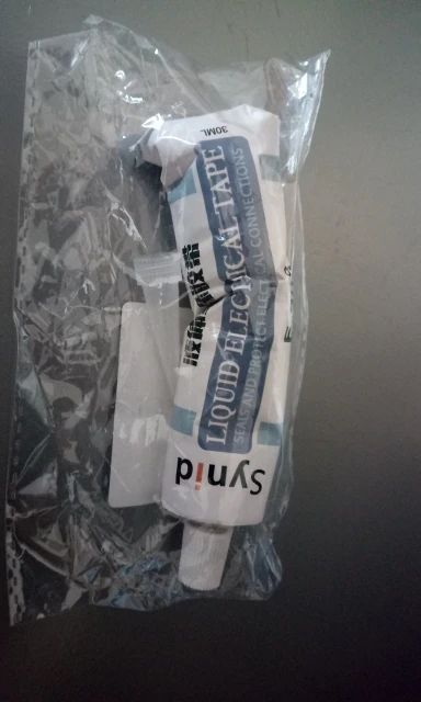 Два с половиной месяца шло до центральной части России. Посылка не отслеживалась совсем. По внешнему виду: этикетка - распечатанная на принтере бумага, наклеенная на тюбик. Тюбик выполнен из тонкой фольги. При надавливании разворачивается дно. Для слаботочных сетей ещё можно рискнуть использовать. Дня низкого напряжения 0,23 кВ - нет.