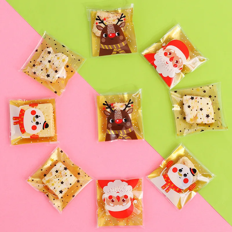 Самоклеящийся мешок для упаковки печенья, конфет, Санты, 100 шт., 2021