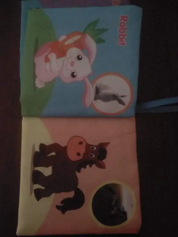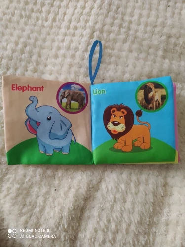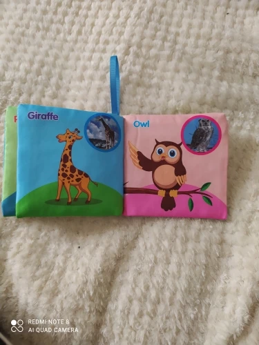 Очень хорошая книга, показывает животных также на реальной картинке. Мягкие и две страницы издают звук, как внутри рисовая бумага. Также вы можете повесить его