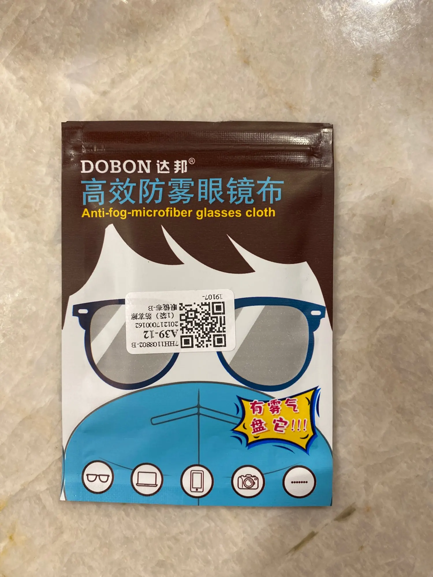 Received, it's a nice cloth but lenses still fog up. A little less, but they still fog up