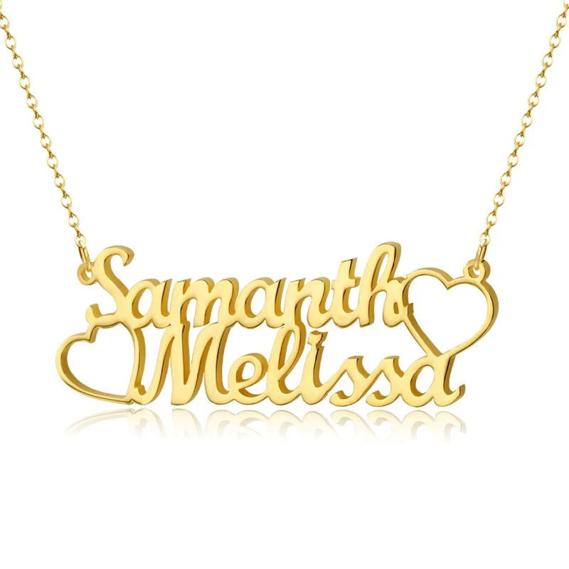 Именное ожерелье с двойным именем для женщин, 18k позолоченная нерж...