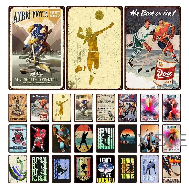 Металлические знаки для занятий спортом, атлетом, волейболом, танцами, йогой, хоккеем, регби, ретро жестяной знак металлическая пластина для дома, комнаты, тренажерного зала, Настенный декор