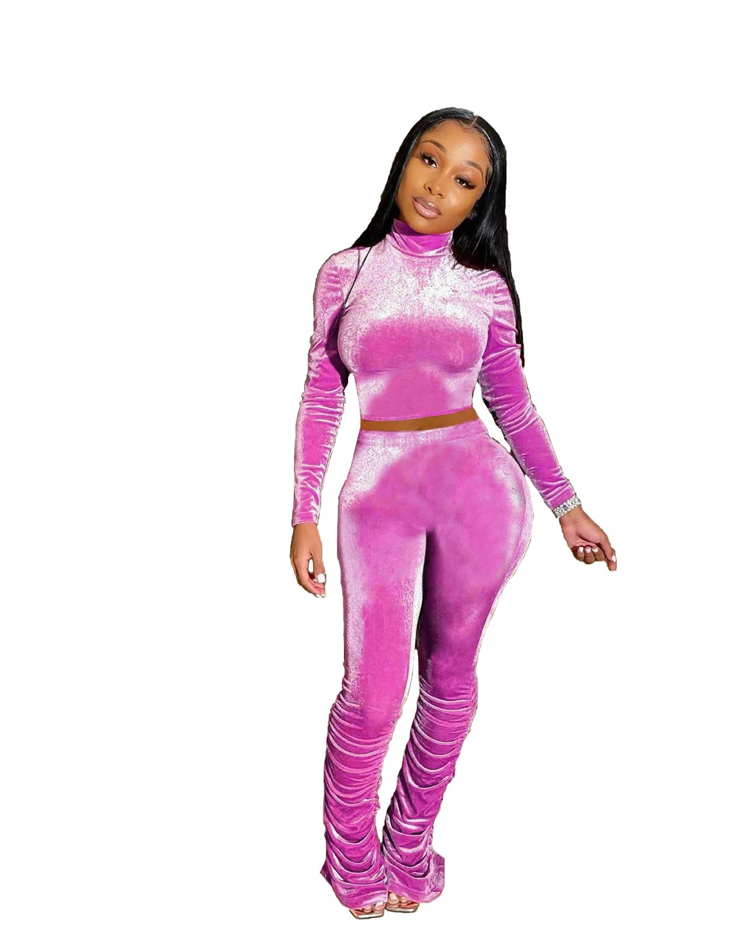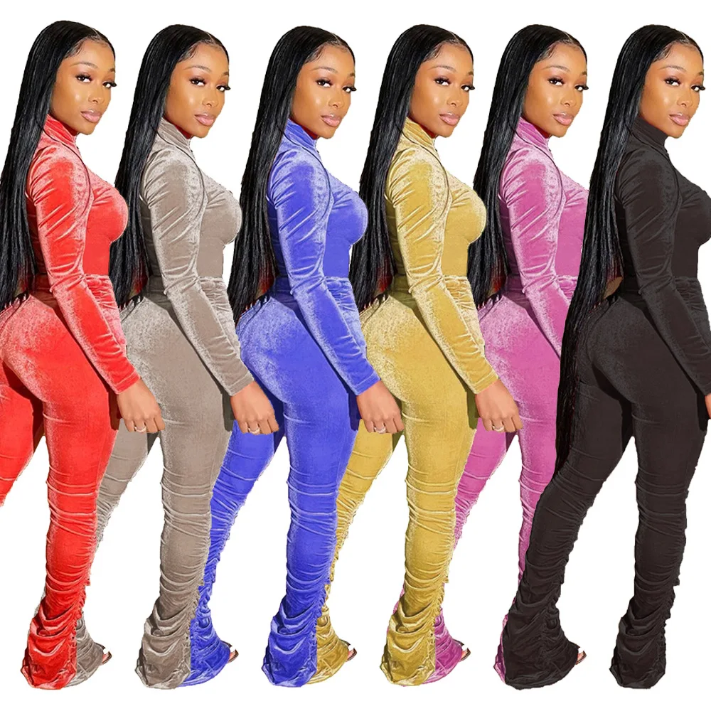1L17 0 осень-зима, Женский Повседневный однотонный бархатный женский комплект из двух предметов, топ и брюки, спортивные костюмы для женщин