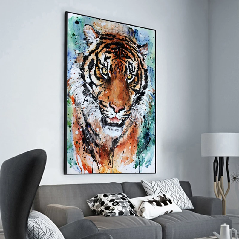 Абстрактный тигра искусство рисовать картину маслом на холсте красочные постеры с животными и принты стены искусства изображение Livng домашний декор