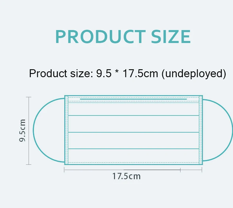 Особенности продукта: 1. Твердое нажатие на края, не легко открыть 2. Многослойная трехмерная складка, подходит для формы лица, 3. Три слоя фильтра эффективно блокирует частичную пыль в воздухе 4. Эластичный дизайн ушного крючка Как использовать наши маски: 1. Откройте маску. 2. Темный цвет светится наружу, и светильник имеет вид. 3. Поместите маску на лицо с мостом носа сверху; Отрегулируйте верхнюю проволоку вручную, чтобы полностью подогнать мост носа. 4. Эластичное ухо висит на ухе. 5. Отрегулируйте размер маски, чтобы полностью закрыть нос и рот. Примечания: 1. Из-за различных партий продукции, могут быть небольшие различия в внешнем виде продукта, пожалуйста, обратите внимание. 2. Перечисленные продукты производятся и распределяются за рубежом и подпадают под действие законодательства страны происхождения. Вы можете приобрести товары только для личного пользования. Упаковка: Эта маска упакована в мешки, не упакована в коробку.