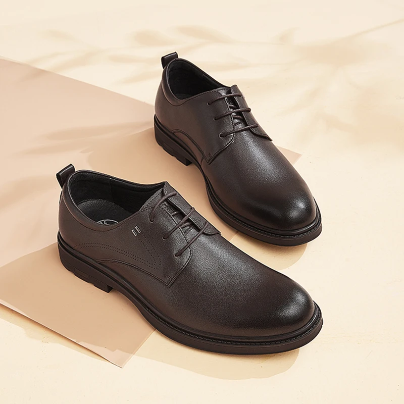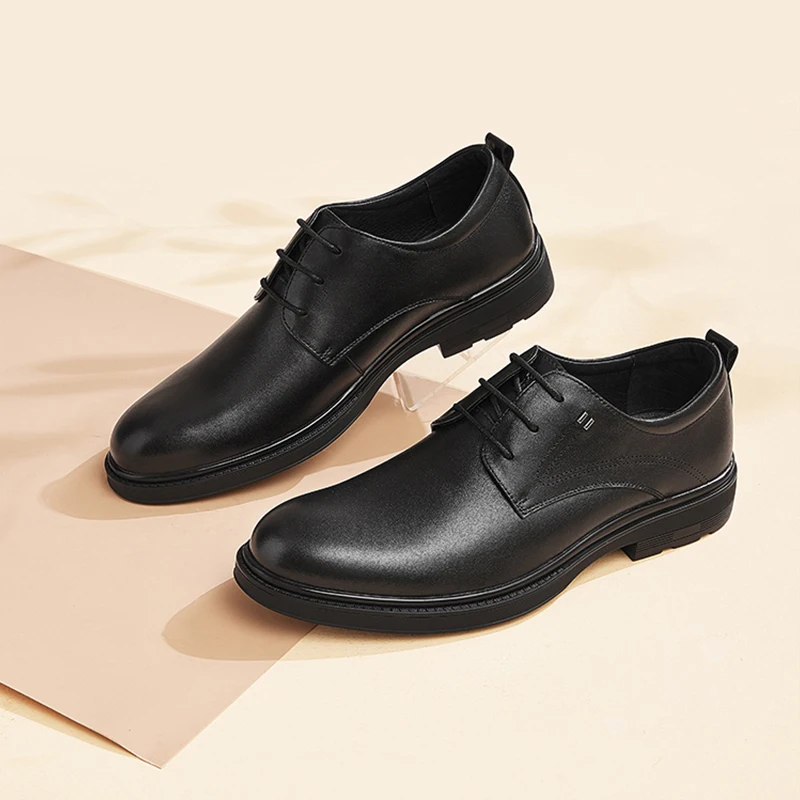Мужская деловая обувь из воловьей кожи, на шнуровке, весна-осень