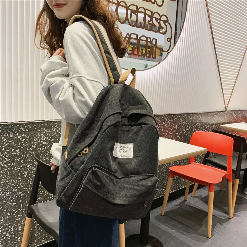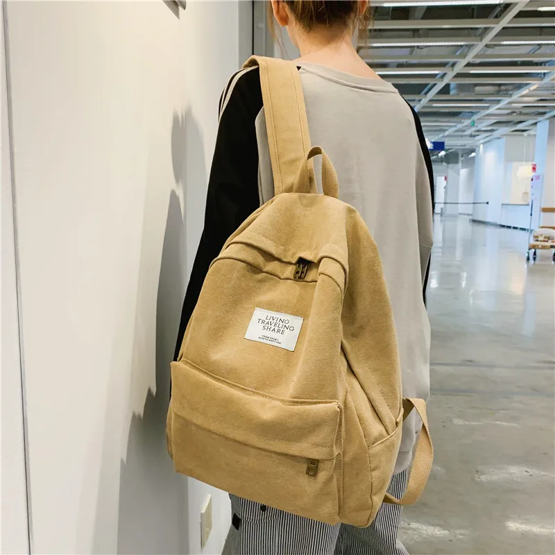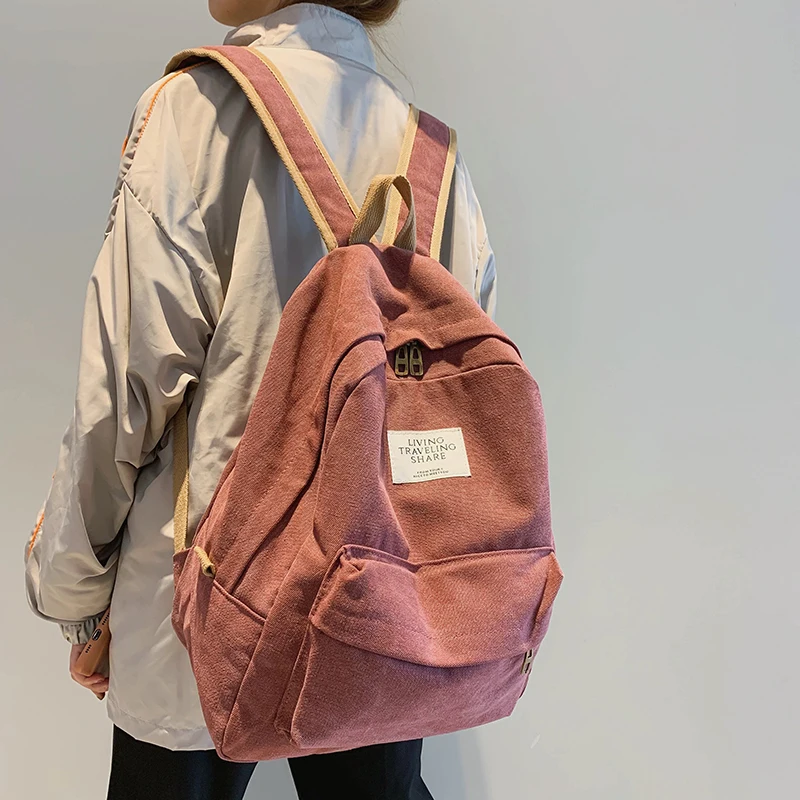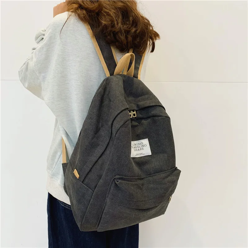Рюкзак женский холщовый, однотонный, для девочек-подростков