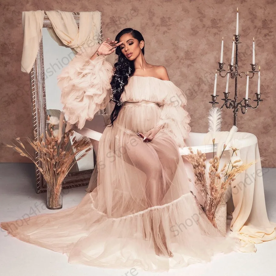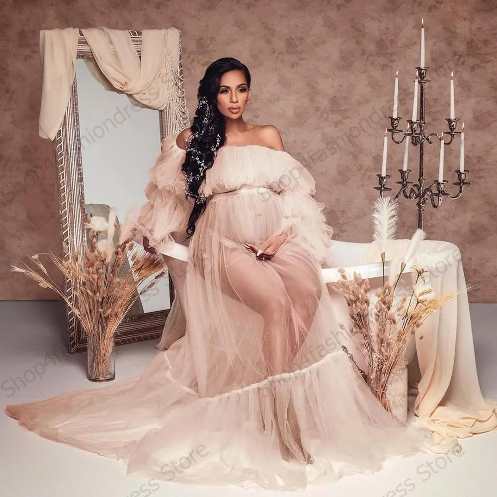 Женское платье из тюля, длинное летнее платье с открытыми плечами и оборками
