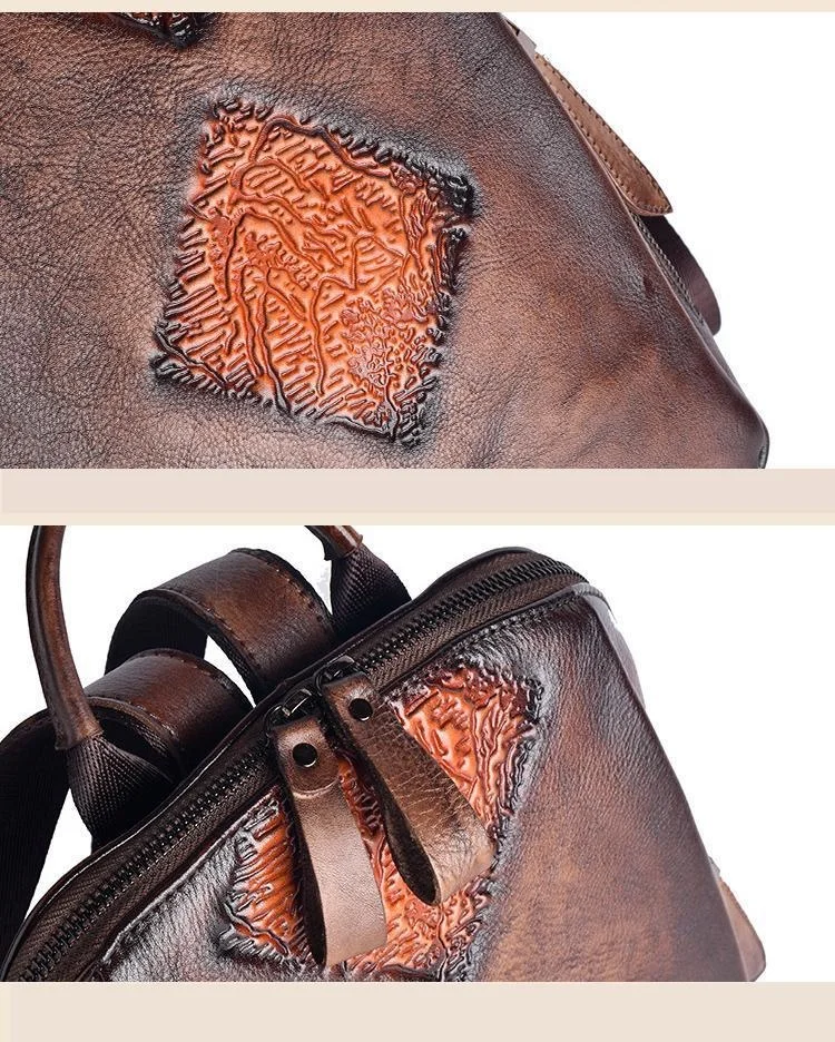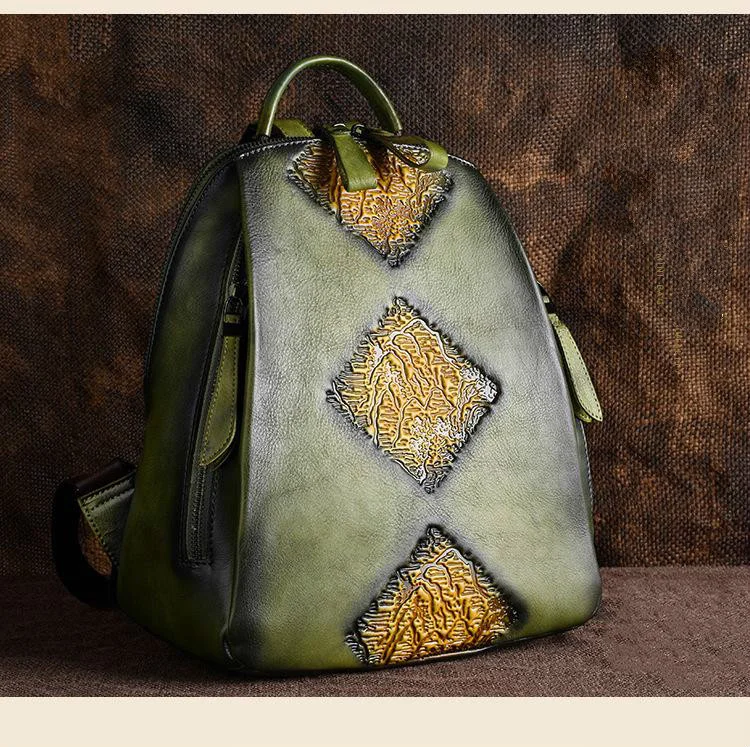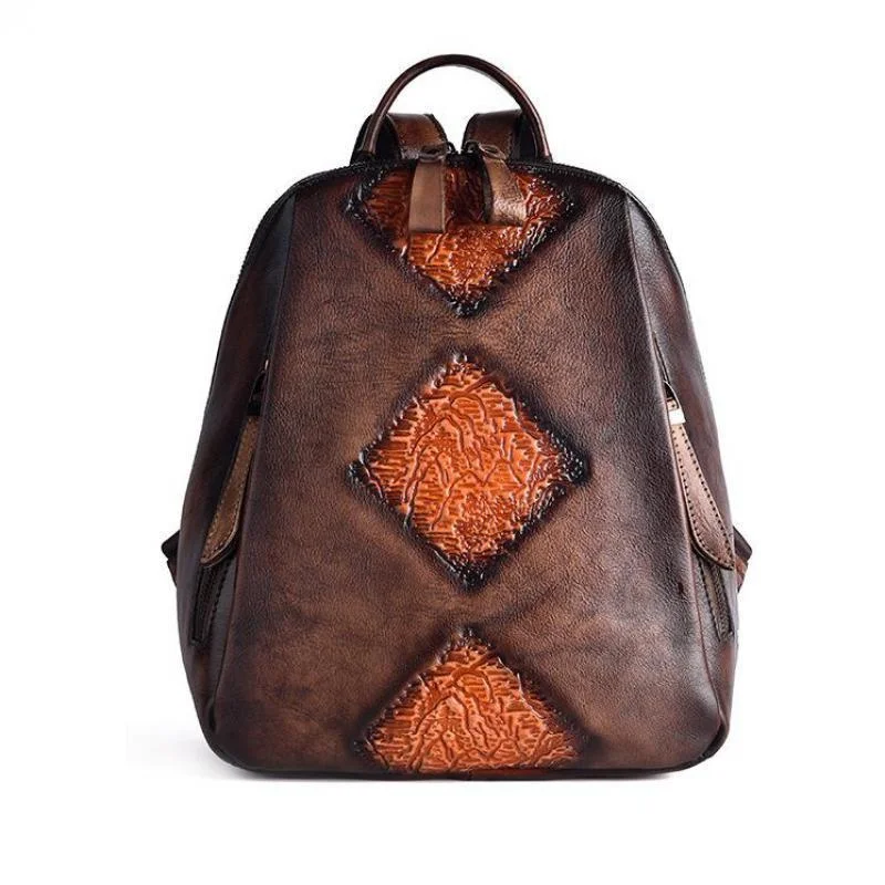 Женский рюкзак из натуральной кожи, винтажный рюкзак с тиснением