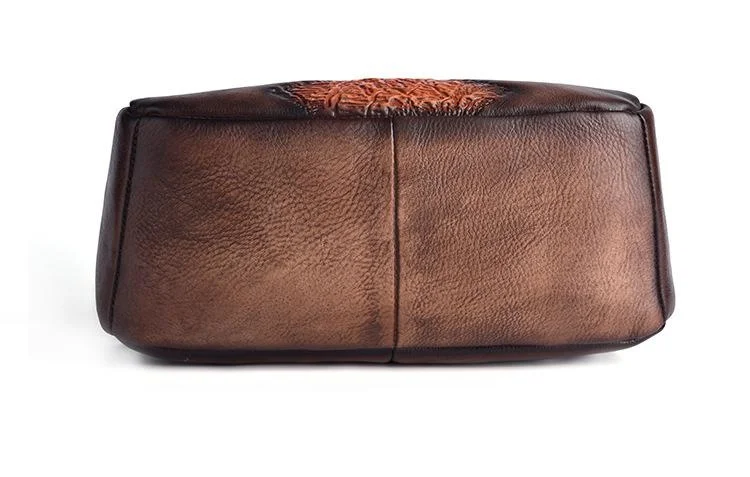 Женский рюкзак ручной работы в стиле ретро с тисненым цветочным рисунком, модная женская сумка из натуральной воловьей кожи, одноцветные многофункциональные рюкзаки