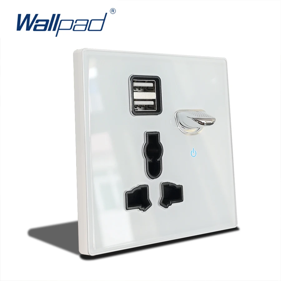 Wallpad L6 белое стекло 13A BS Великобритания Розетка с двойным usb...