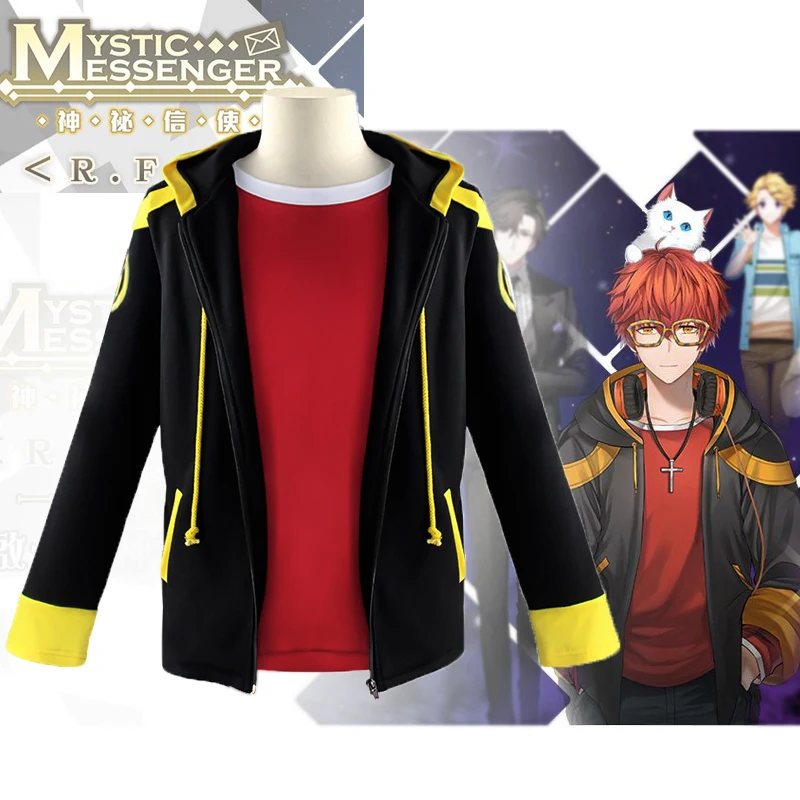 Костюм для косплея Mmystic messenger 707unknown Saeyoung Choi, куртка на молнии, лусиэль семь толстовок, 707, Красная футболка, короткий оранжевый парик