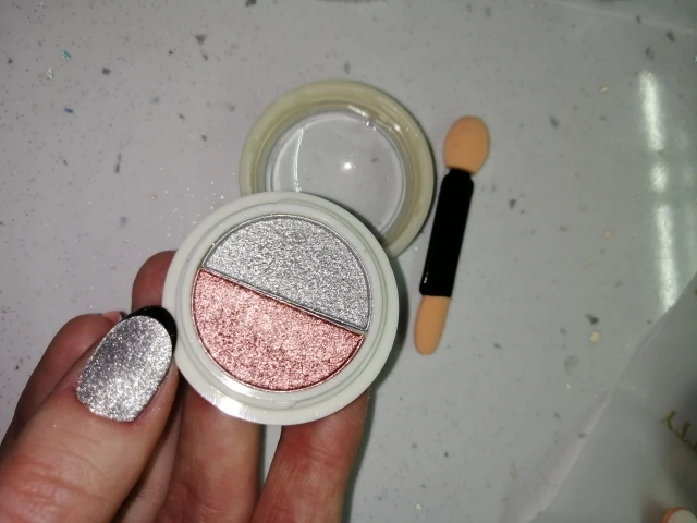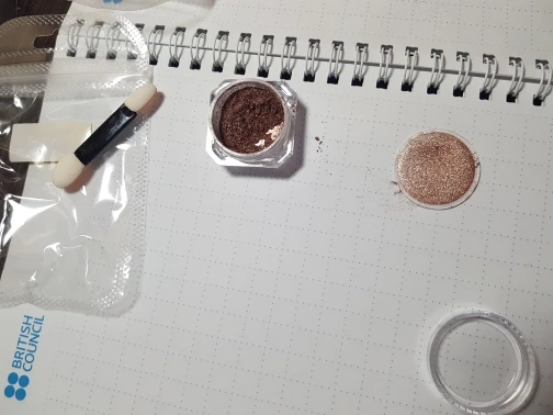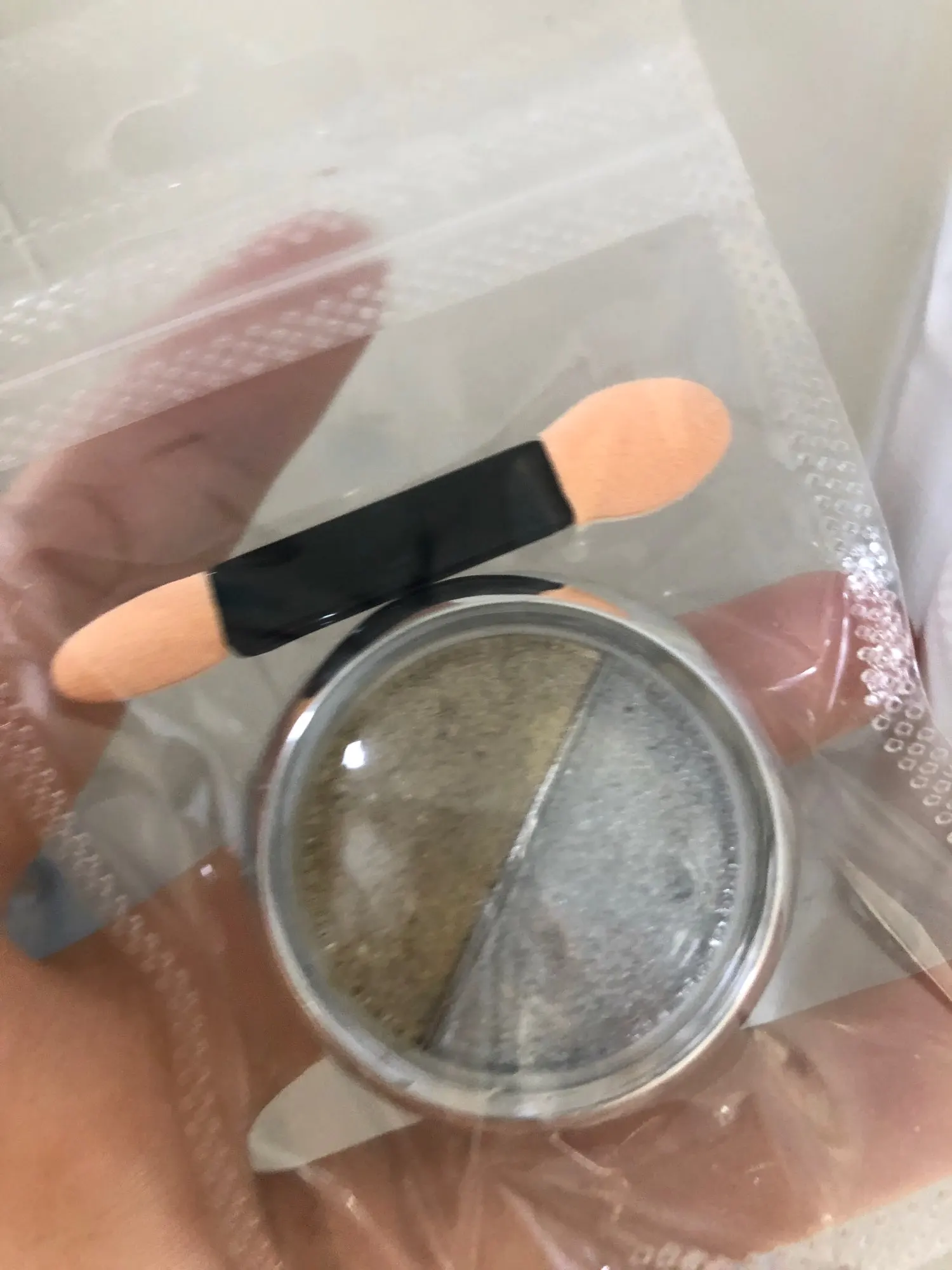 Миниатюрный. Это не порошок. Похоже на тени для век.