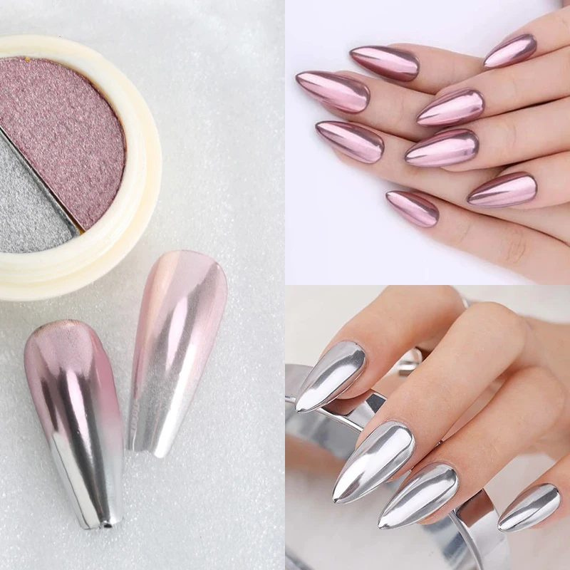 Блеск для ногтей, однотонный, цвета розового золота зеркальная пудра для ногтей пробы, хромированный пигмент лак с металлическим оттенком, декоративная пыль, 1 коробка