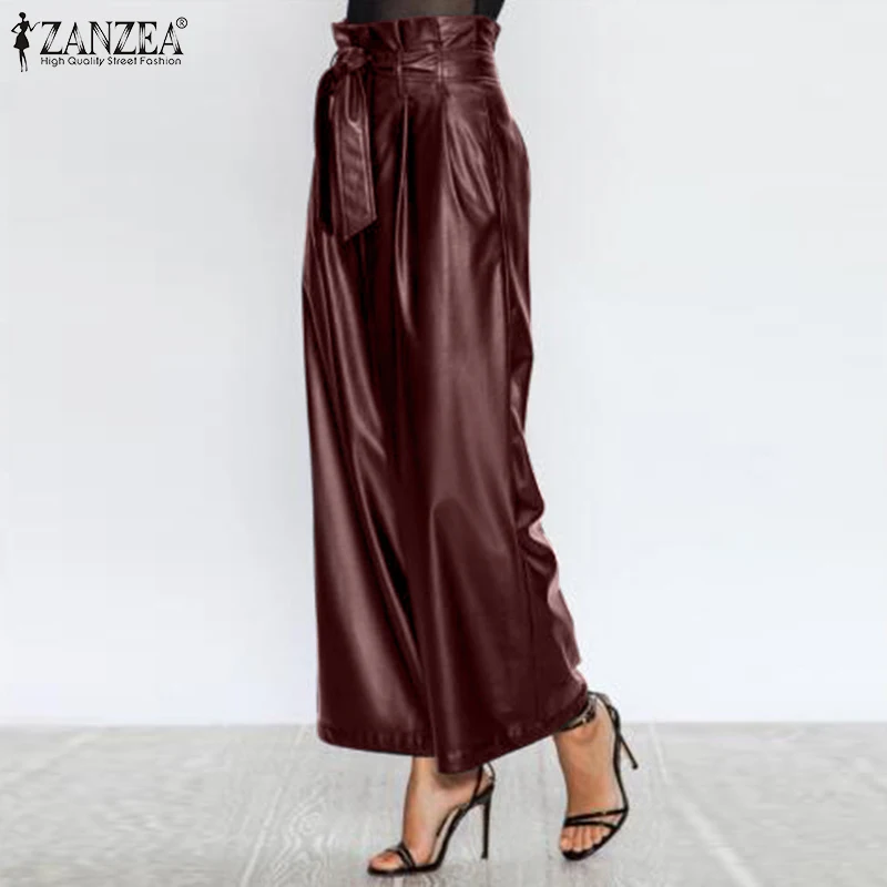 Женские брюки из искусственной кожи ZANZEA 2021 стильные широкие брюки повседневные брюки с высокой талией и репсой