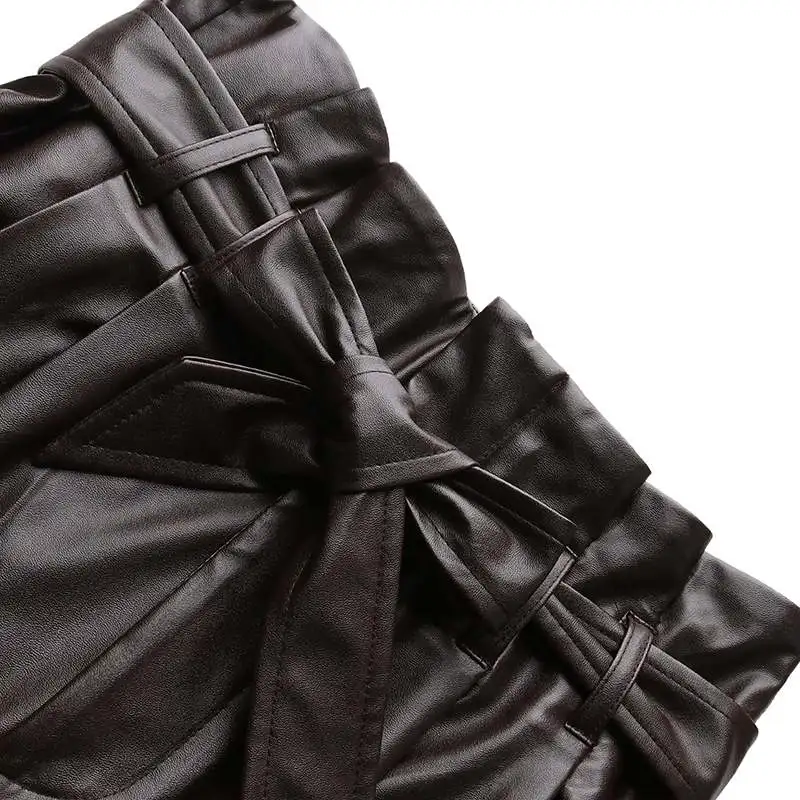 Материал: 100% полиэстерЦвет: черный, винно-красный, коричневыйПосылка включает в себя: 1 брюки (с поясом)Информация о продукте:-Шнуровка-Высокая талия-Боковые карманы-Широкие-Кожаные брюки-С передней молнией