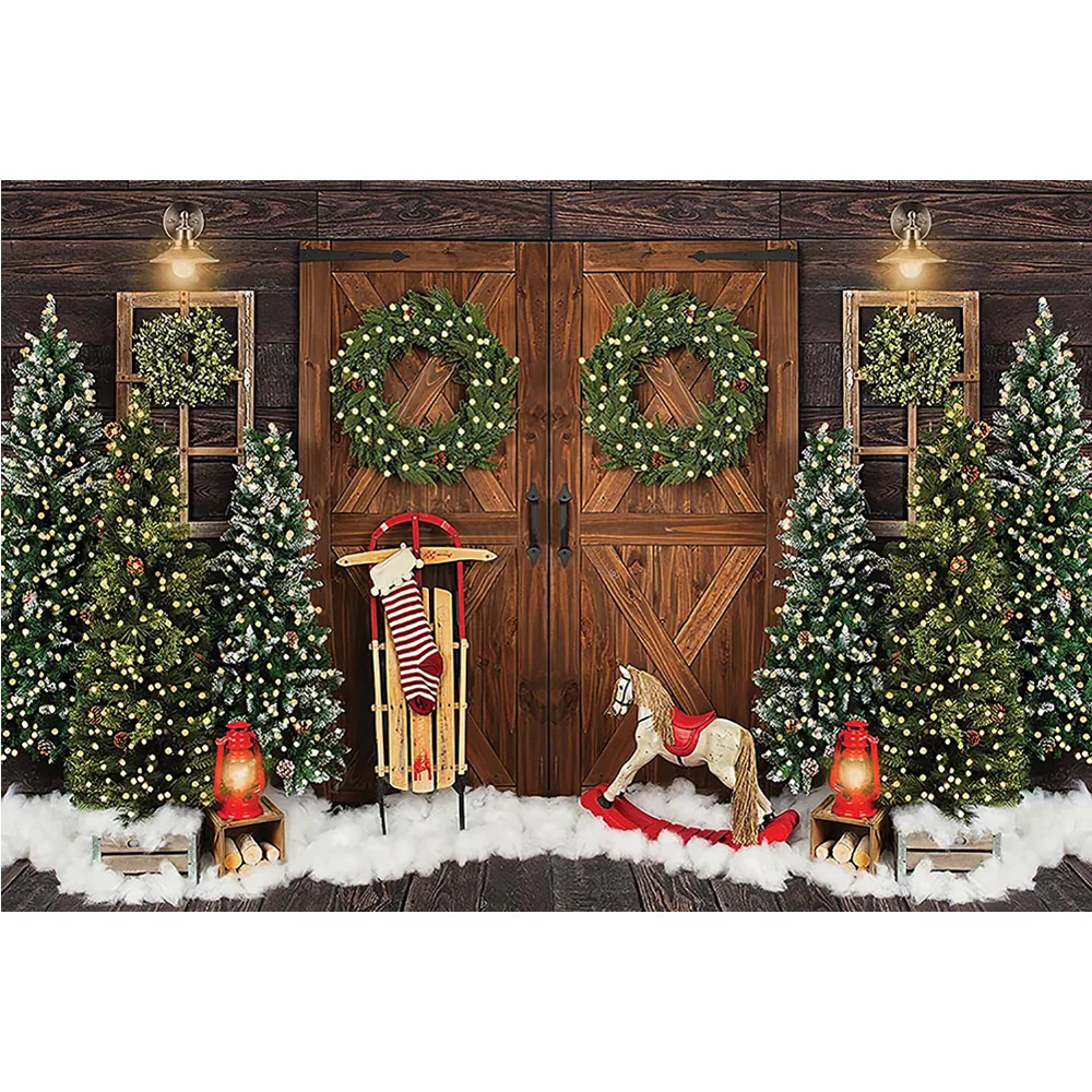 Рождественский фон для фотосъемки Снег Рождественские елки зимний портрет фото фон носки винтажный деревянный дверной венок