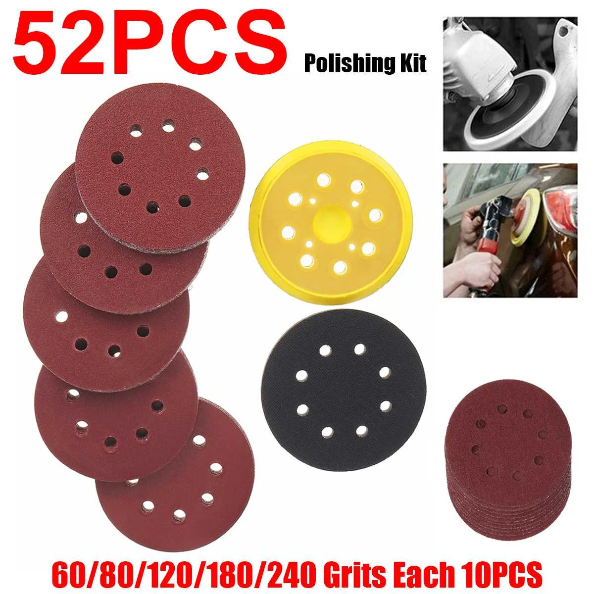 52 шт. 125 мм на застежке-липучке шлифовальные диски 8 отверстий наждачная бумага колодки Набор 6080120180240 крупа шлифовальный диск абразивный шлифовальный инструмент