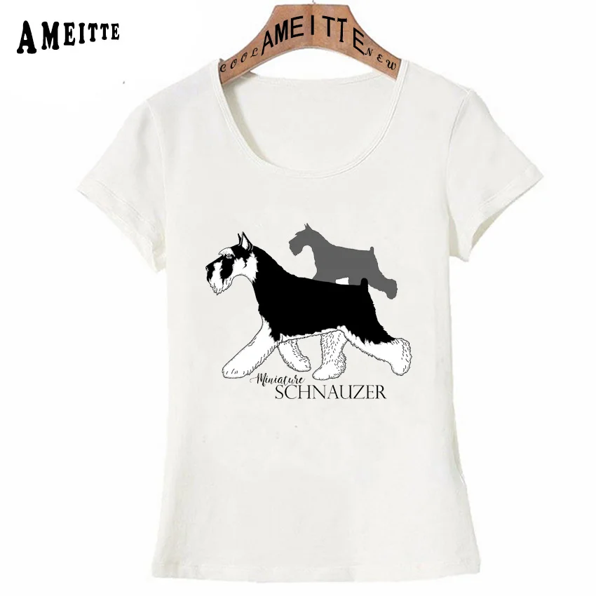 Женская футболка с принтом AMEITTE, летняя белая футболка с изображением шнауцера, собаки, пересечения, Повседневная футболка для девочек