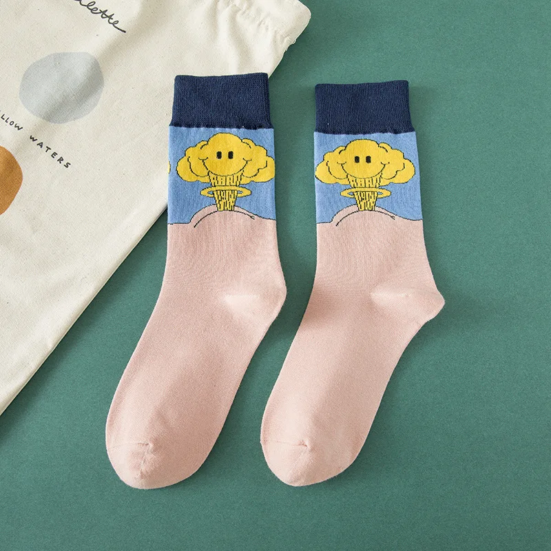 Пара новых индивидуальных мультяшных забавных цветных женских носков, корейские хлопковые удобные Мультяшные женские носки