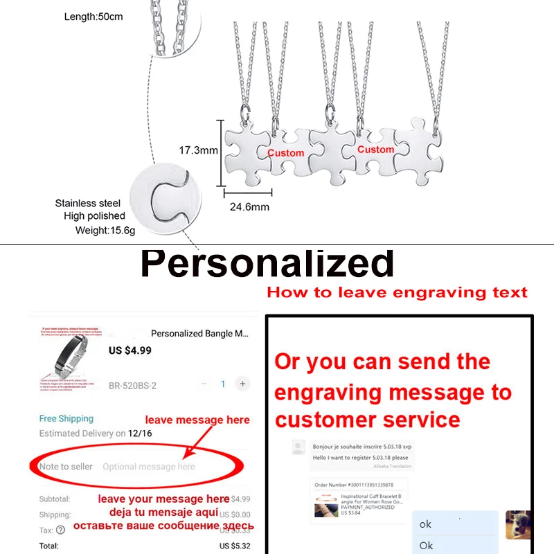 Пользовательские Гравированные головоломки ожерелье 2345 шт набор семья Пара Ожерелье s дружба BFF персонализированные ювелирные изделия