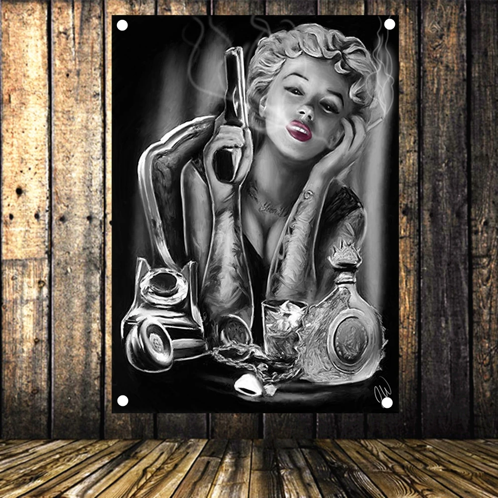 Девушки с пистолетами баннерами черепом тату флаги холст рисунок дл...
