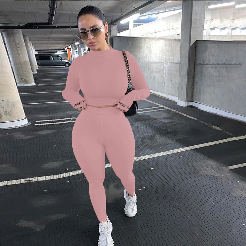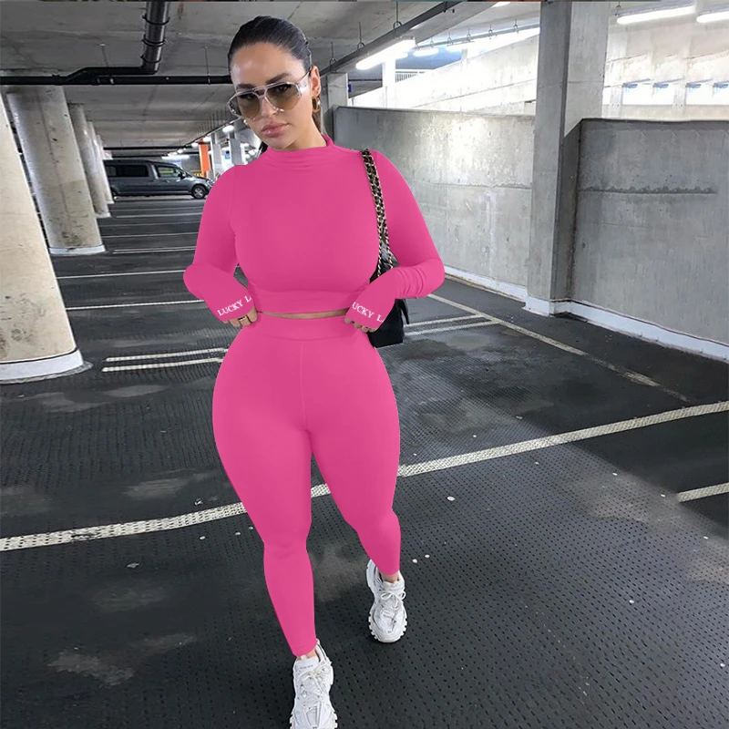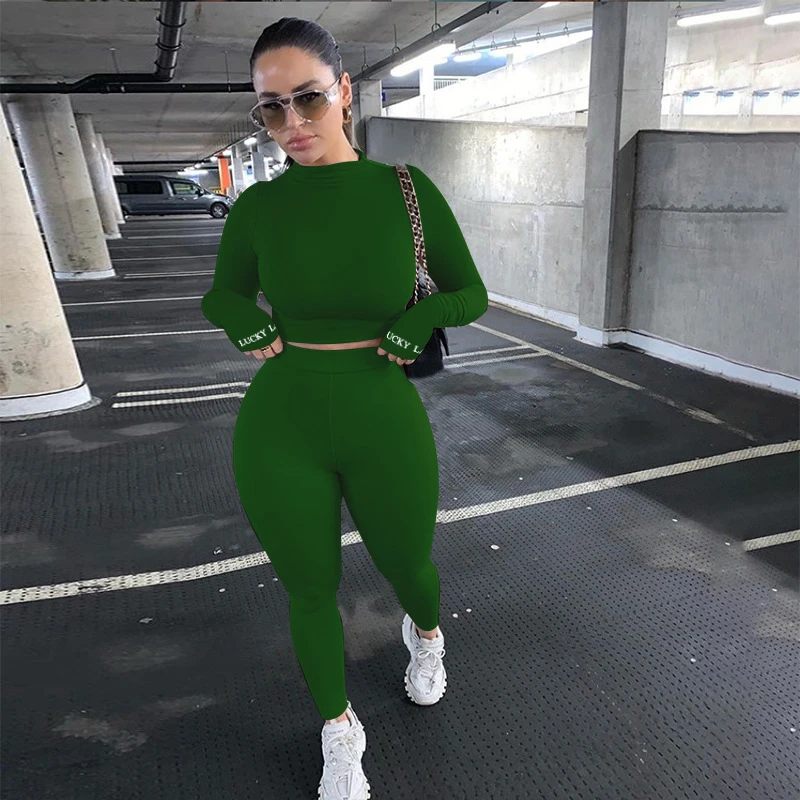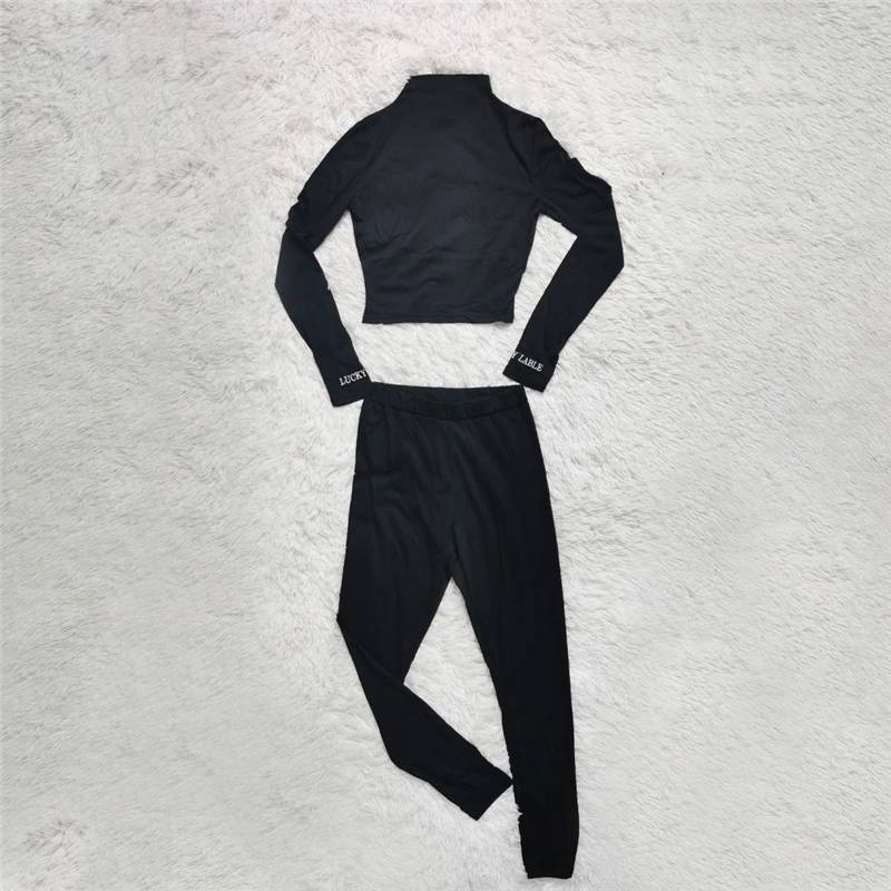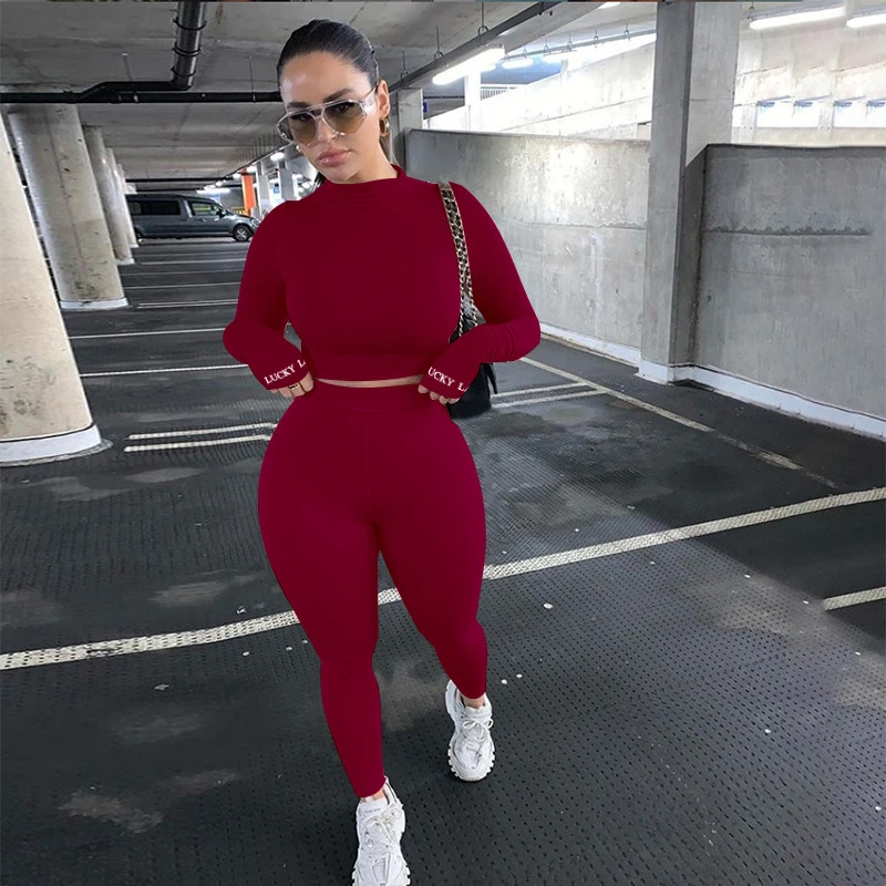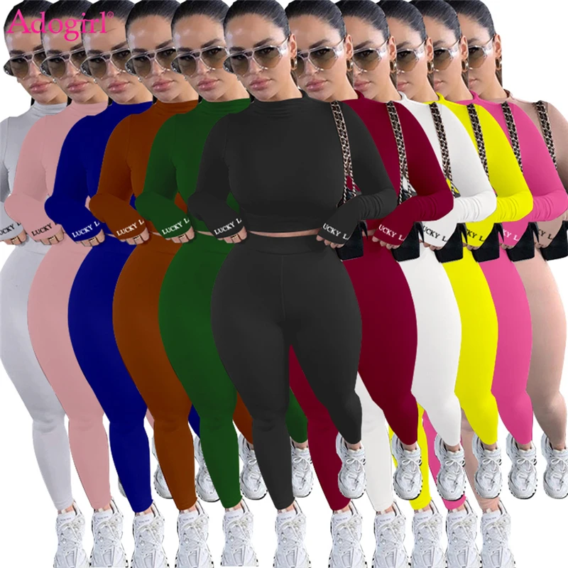 Женский костюм для бега Adogirl с надписью на удачу, рубашка с высоким воротником и длинным рукавом, укороченный топ, брюки-карандаш, комплект из двух предметов