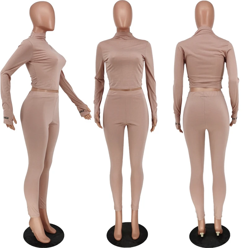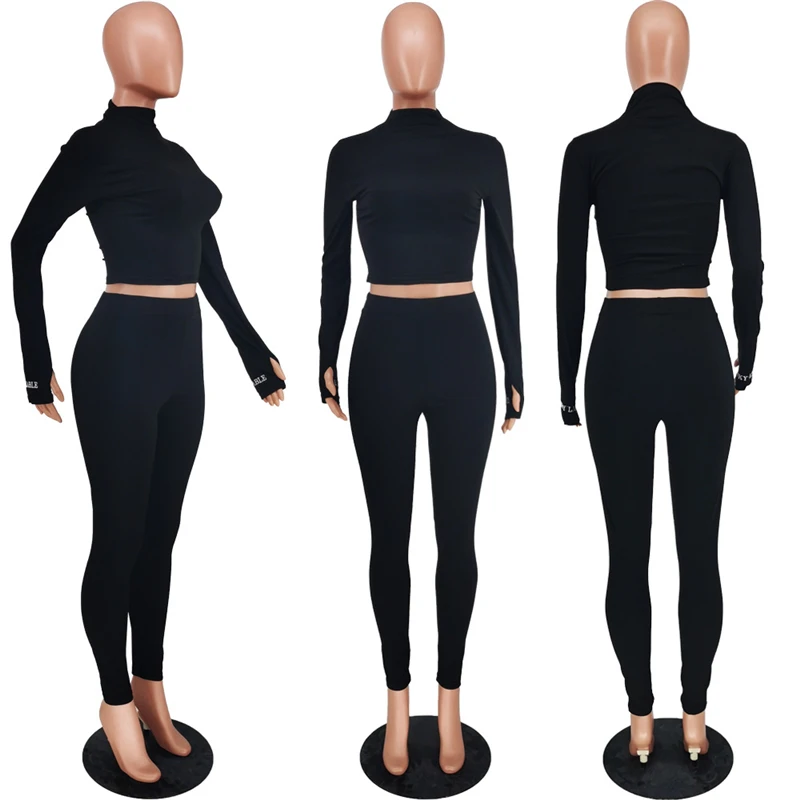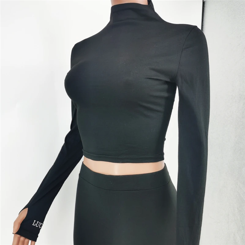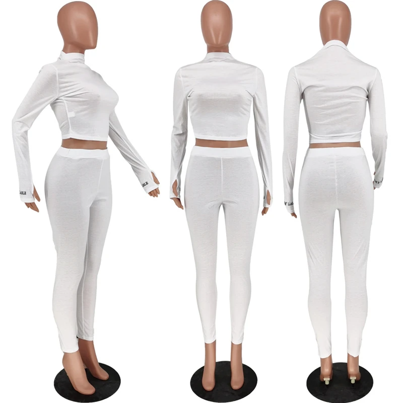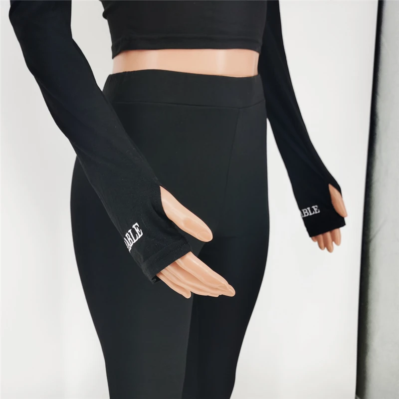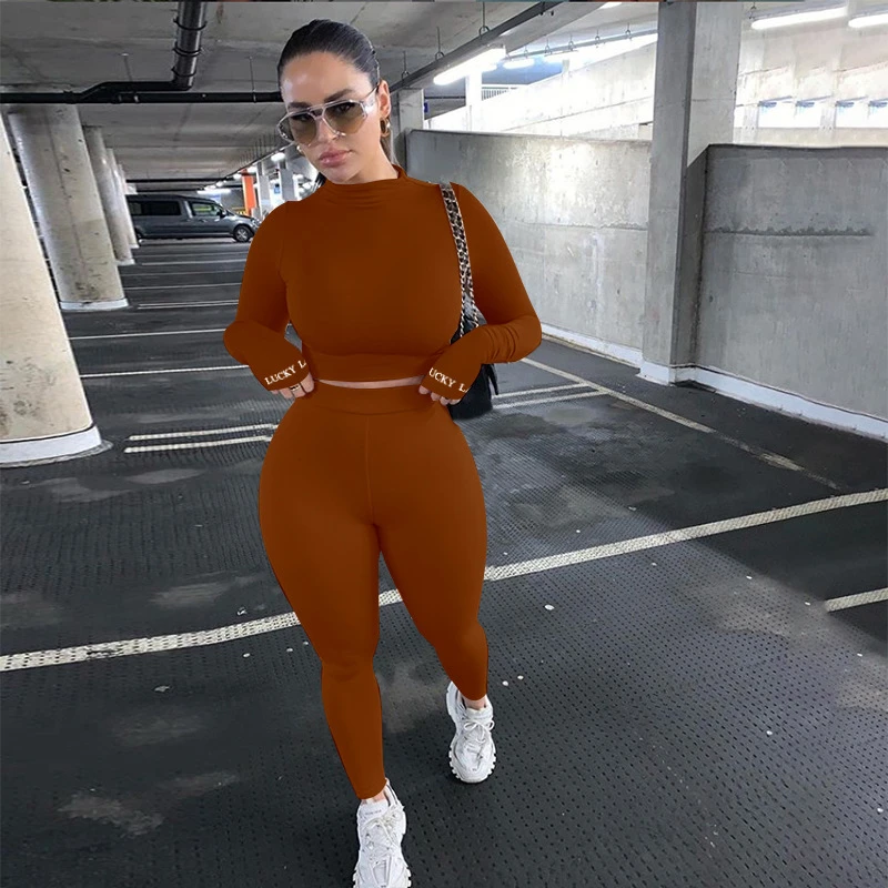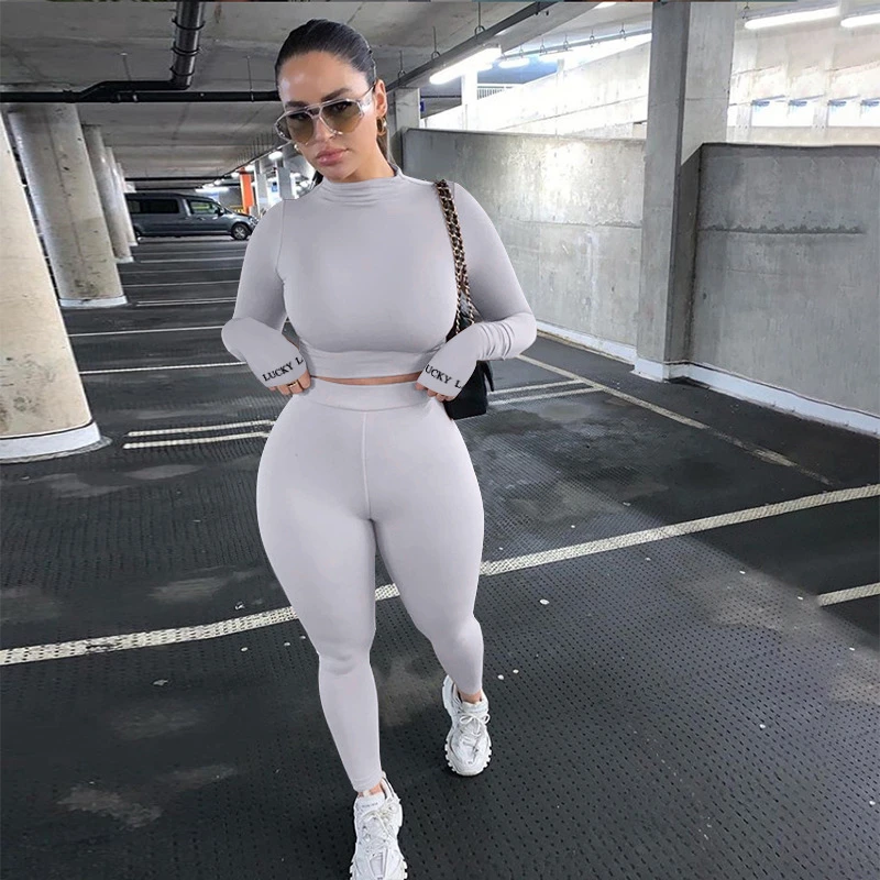Женский костюм для бега Adogirl с надписью на удачу, рубашка с высоким воротником и длинным рукавом, укороченный топ, брюки-карандаш, комплект из двух предметов