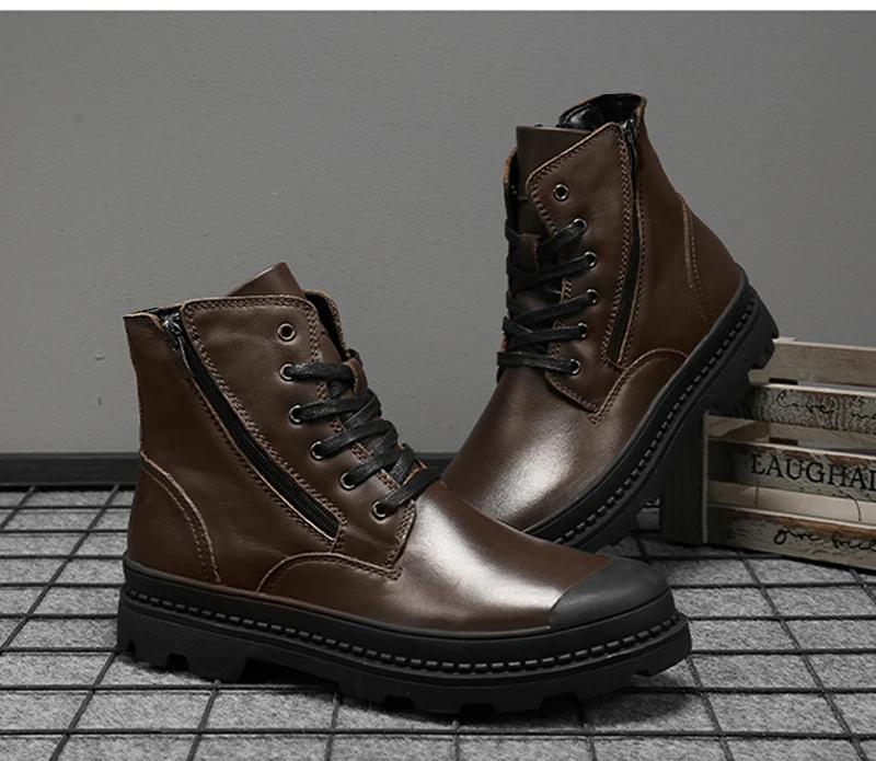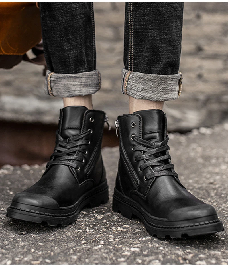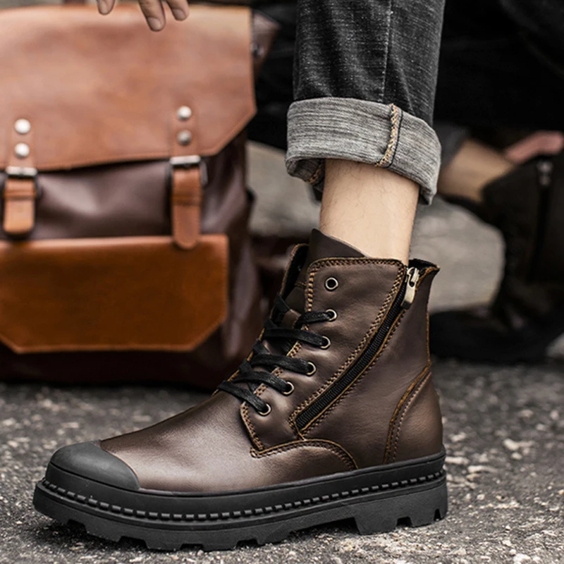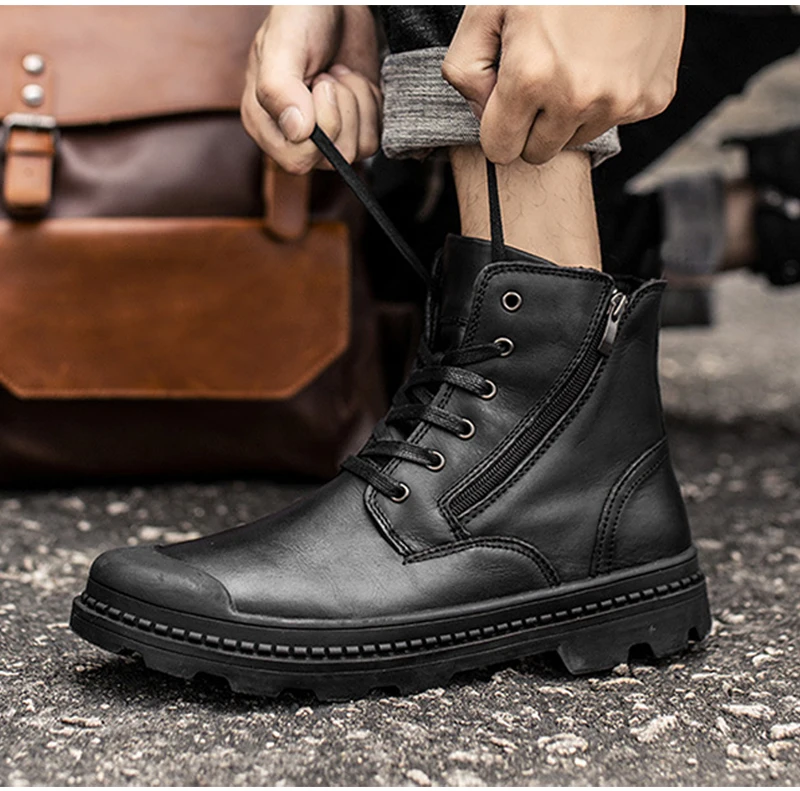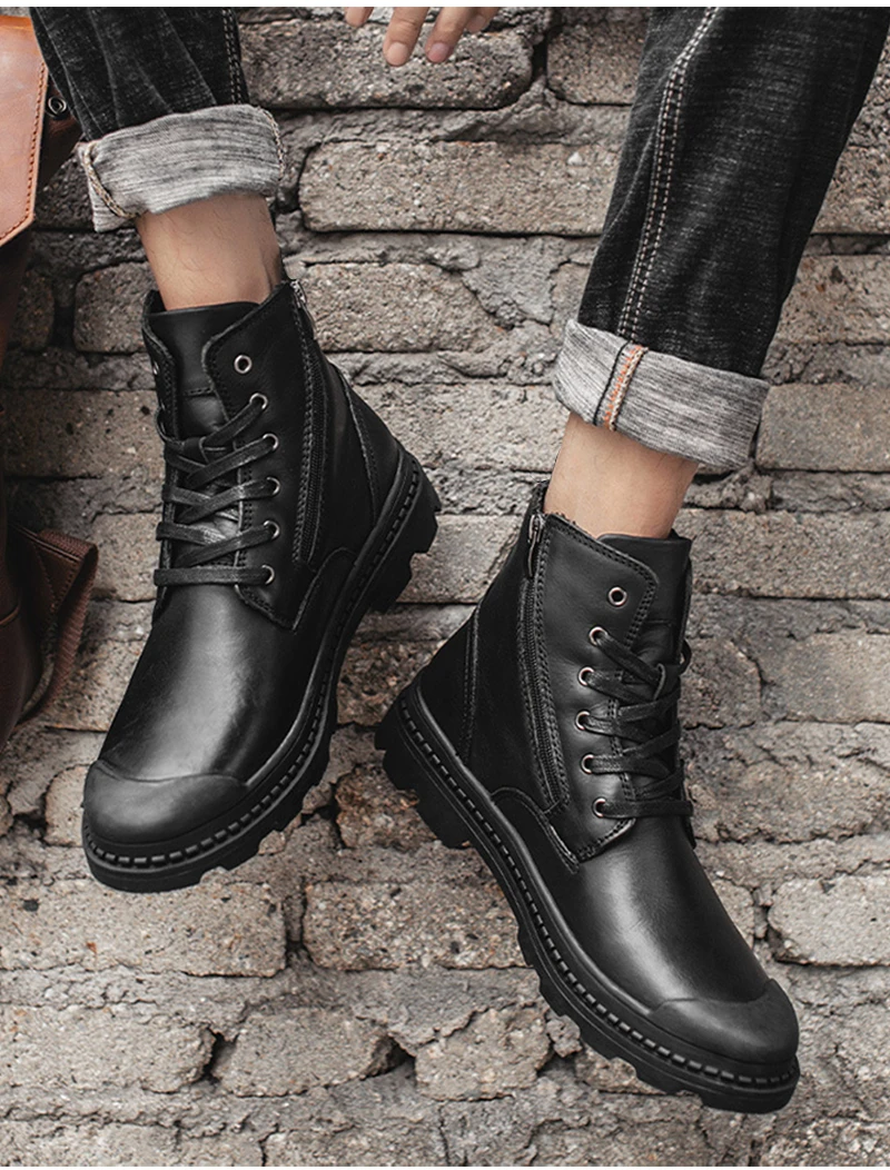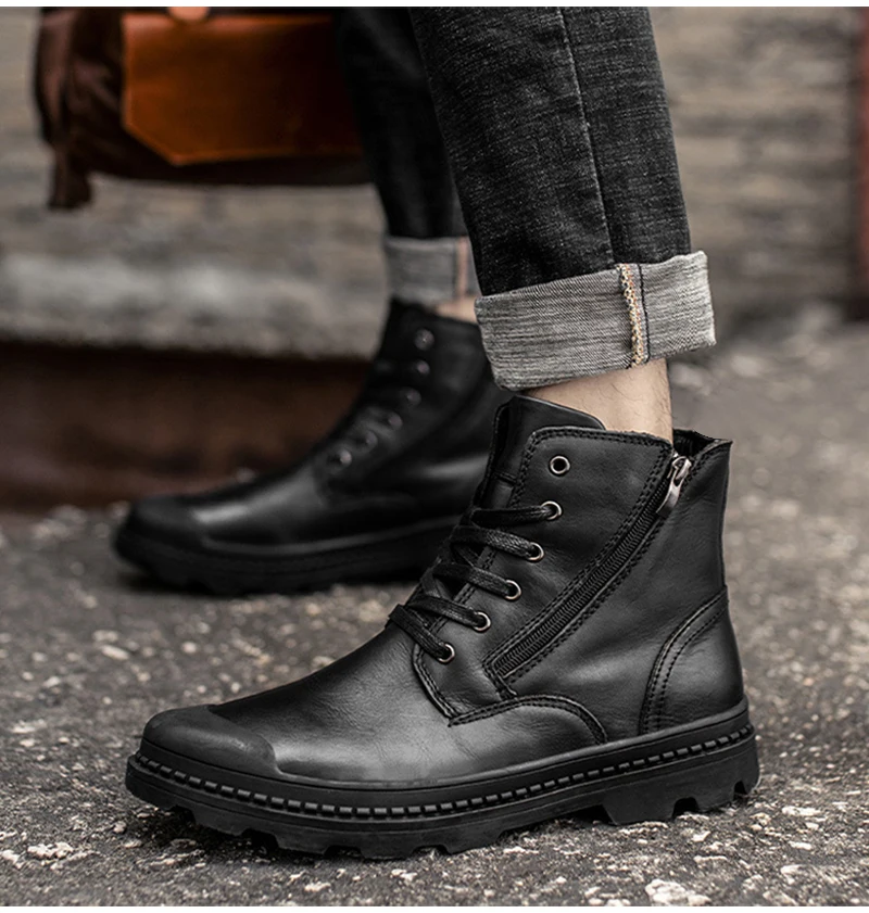 Мужские ботинки Martin из натуральной кожи; Ботинки в байкерском стиле; Теплые зимние ботинки из плюша; Мужские Ботильоны; Рабочие мужские ботинки; Обувь