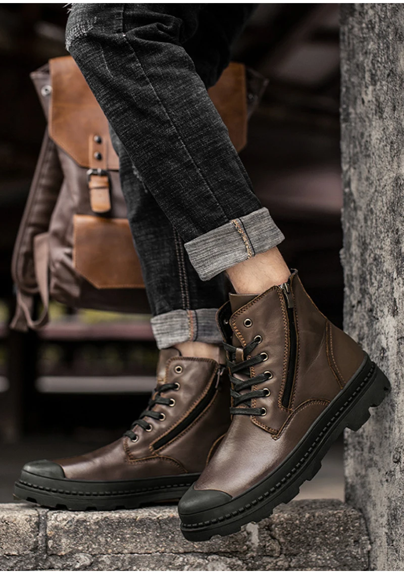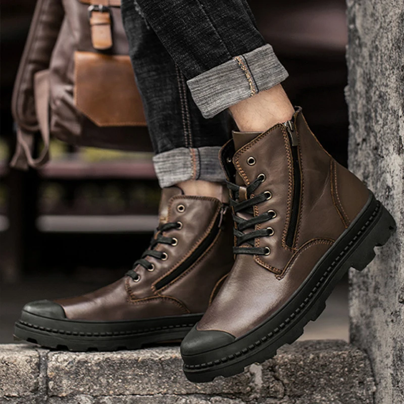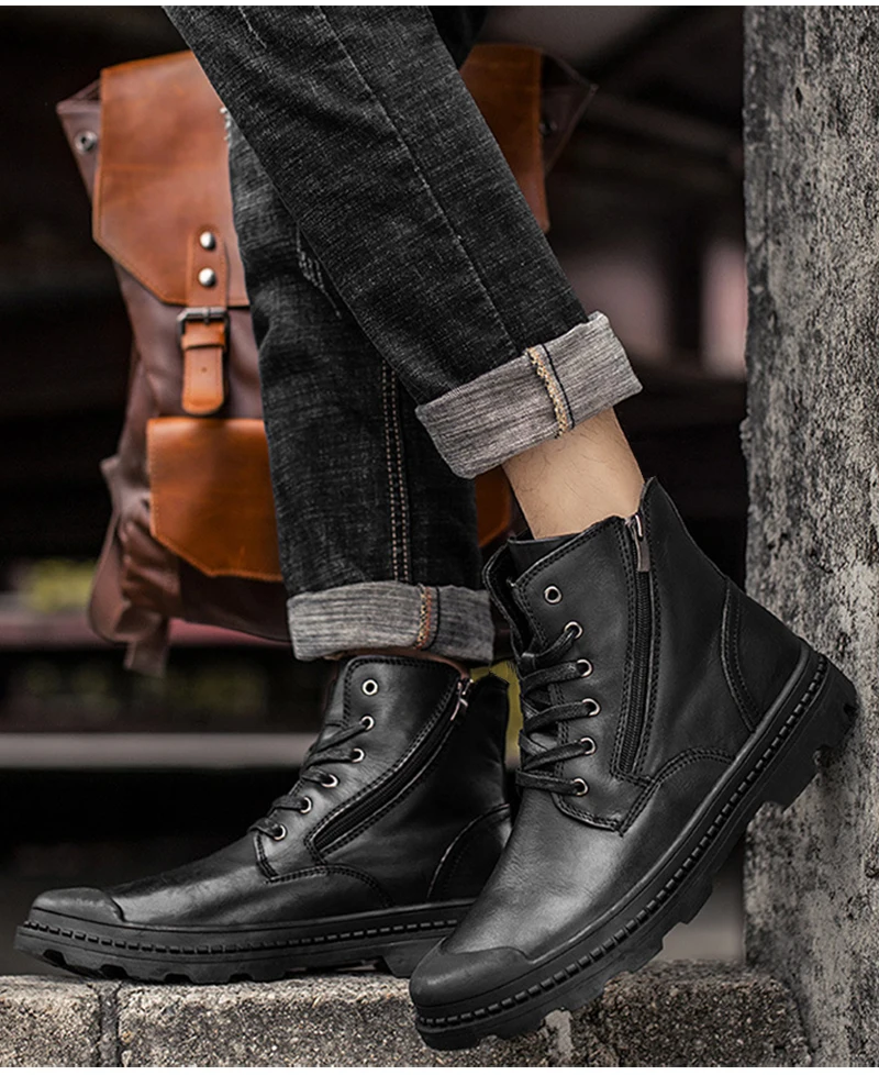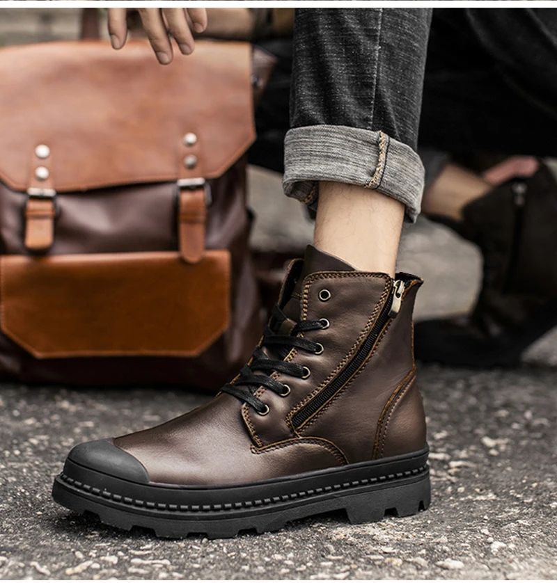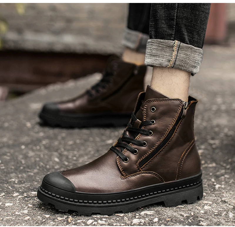 Мужские ботинки Martin из натуральной кожи; Ботинки в байкерском стиле; Теплые зимние ботинки из плюша; Мужские Ботильоны; Рабочие мужские ботинки; Обувь
