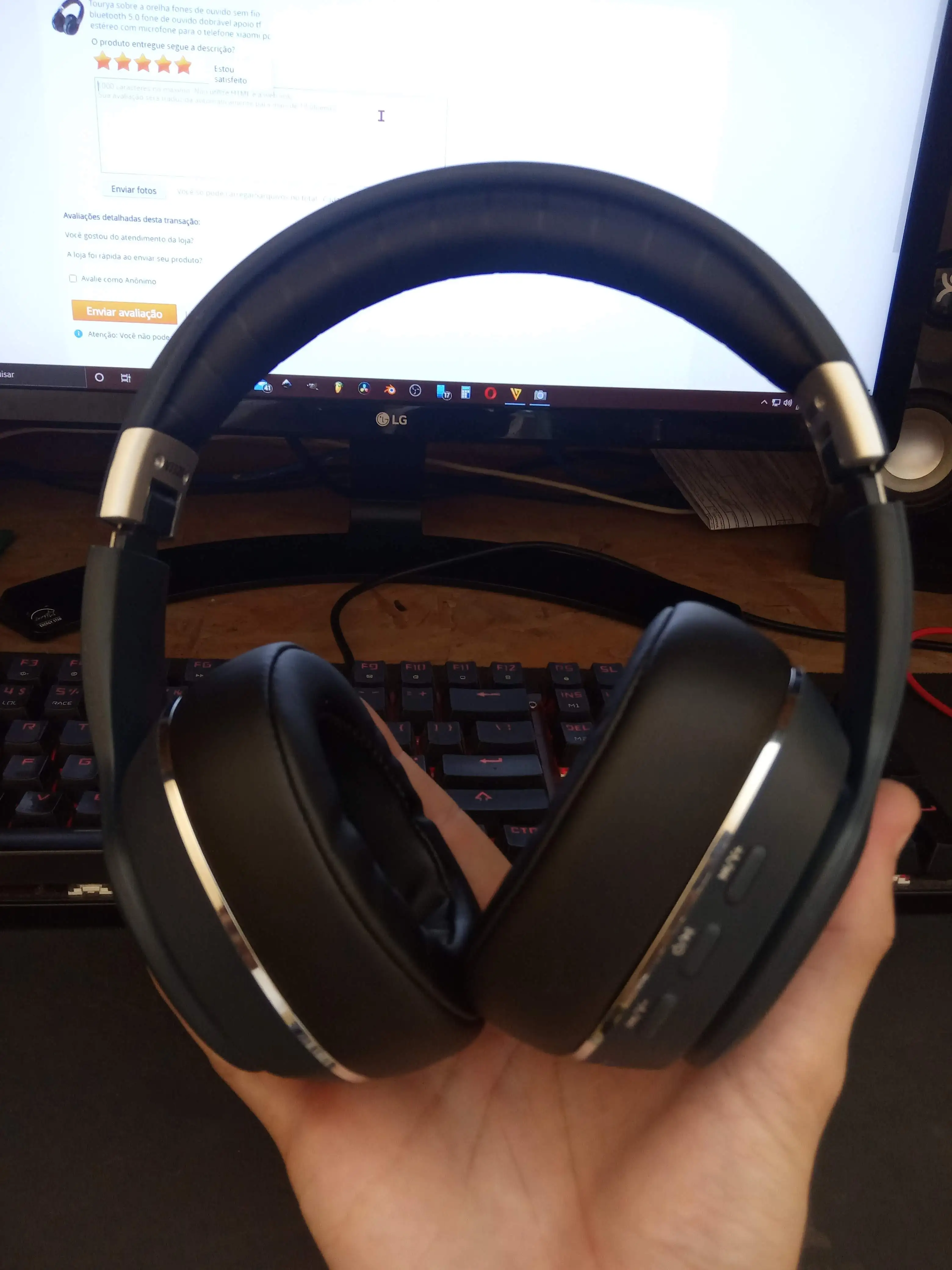 Прибыл очень быстро в Brasil, занял всего лишь немного офиса, телефон имеет очень высокую громкость, сильный бас, пропустили какой-то острый, но для решения эквалайзера, красивый, но выглядит немного хрупким пластиком, мы будем видеть время использования, Очень легкий и изолирует внешние звуки и имеет удобные подушечки, хороший прием батареи Bluetooth достаточно жесткий.