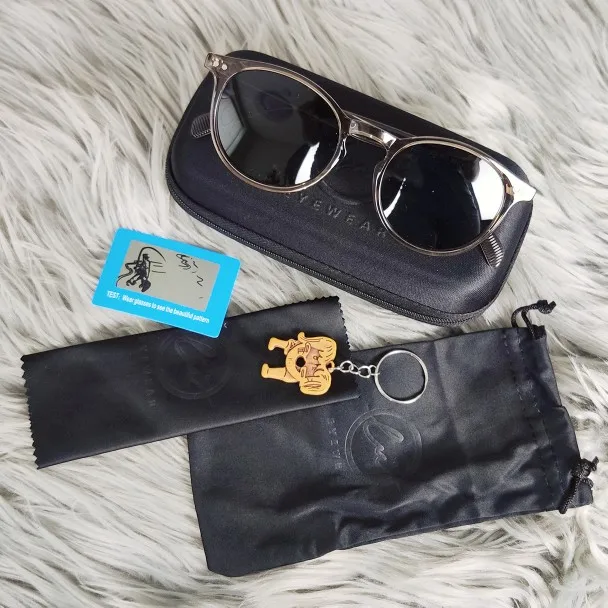 Солнцезащитные очки Высокое качество! В офлайн магазинах такие явно дороже стоят. Очки с поляризацией, это особый плюс. Есть тестовая карточка для проверки. Так же в комплекте футляр для хранения и транспортировки, чехол и салфетка для ухода. Очки хорошо сидят, с лица не спадают. У продавца множество оттенков, было сложно выбрать) Доставили за 13 дней, упаковка надежная Однозначно рекомендую к покупке