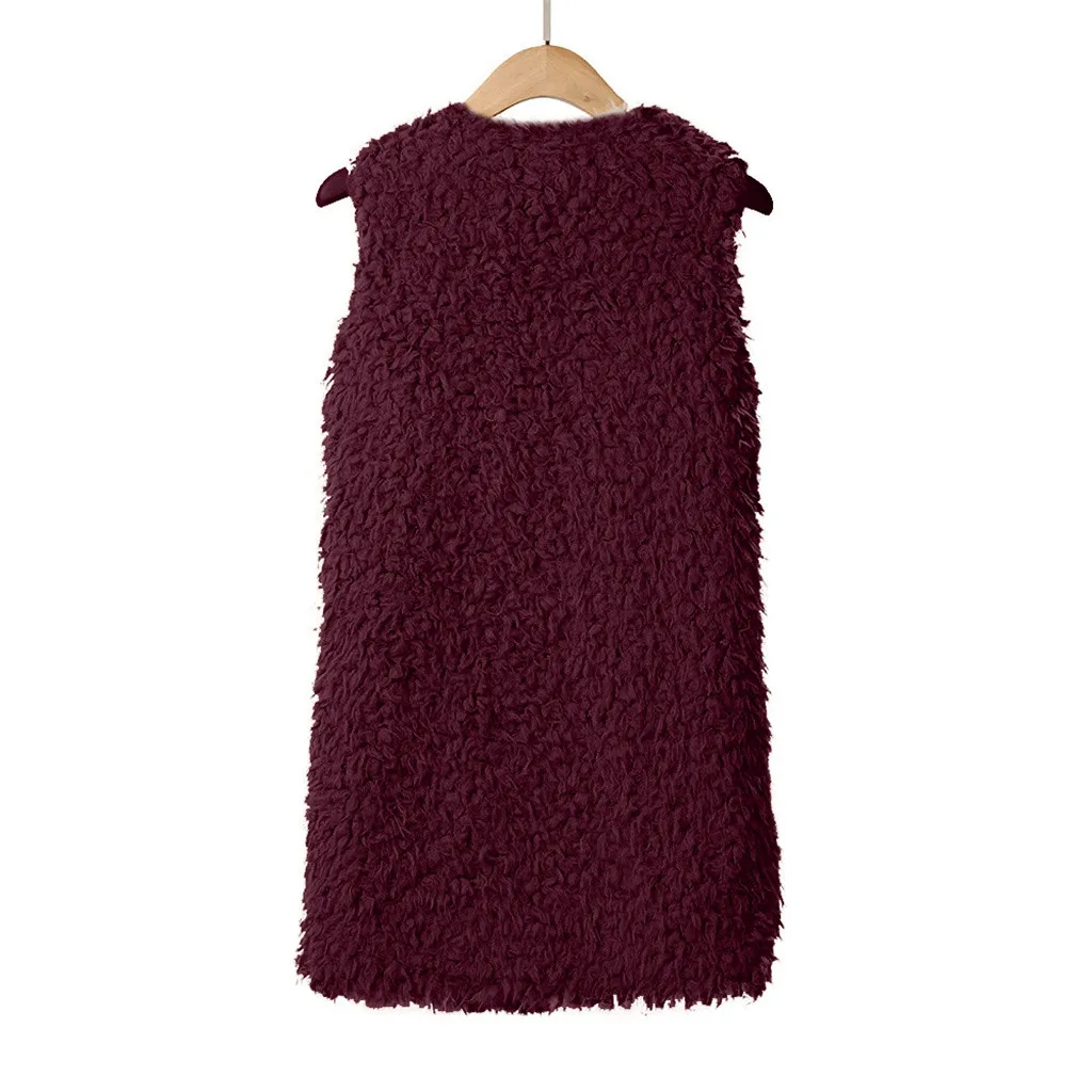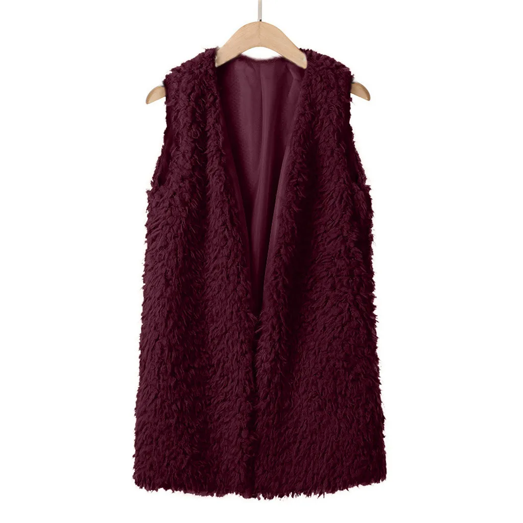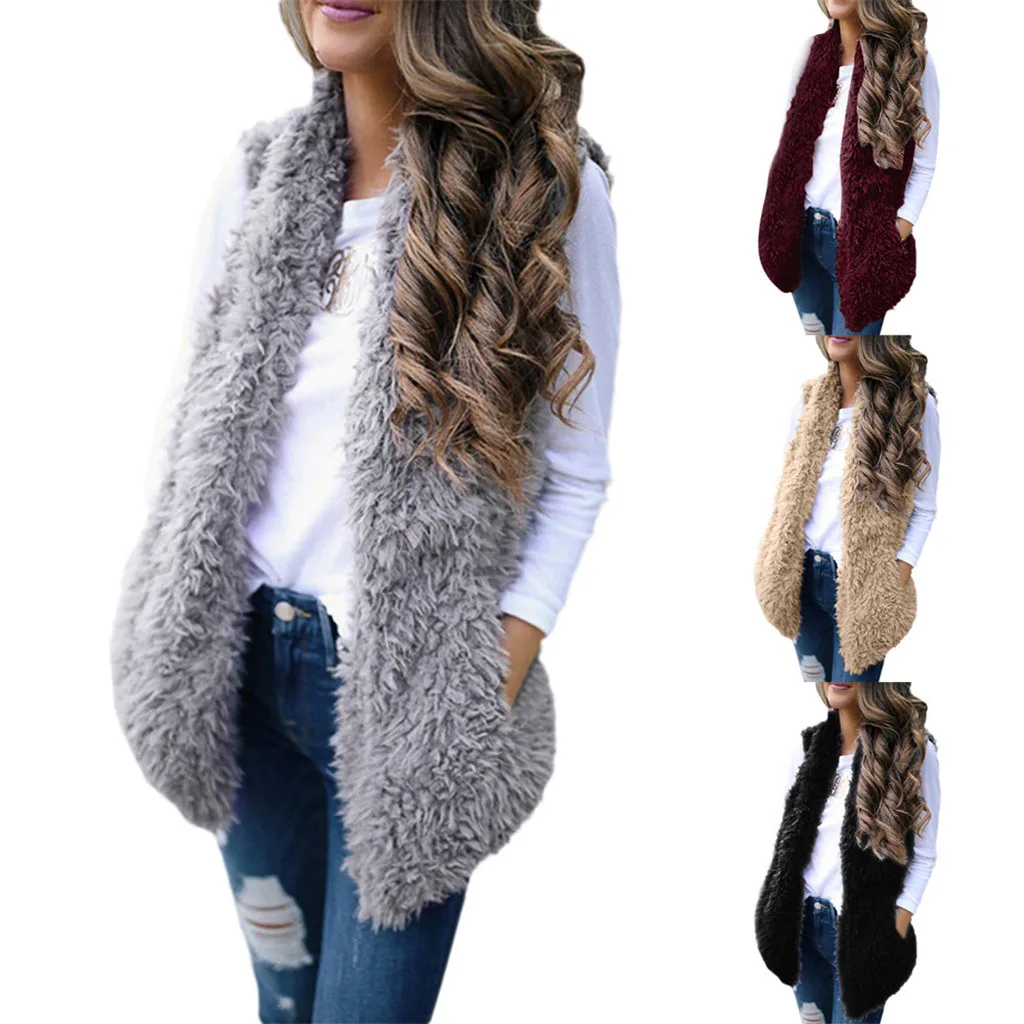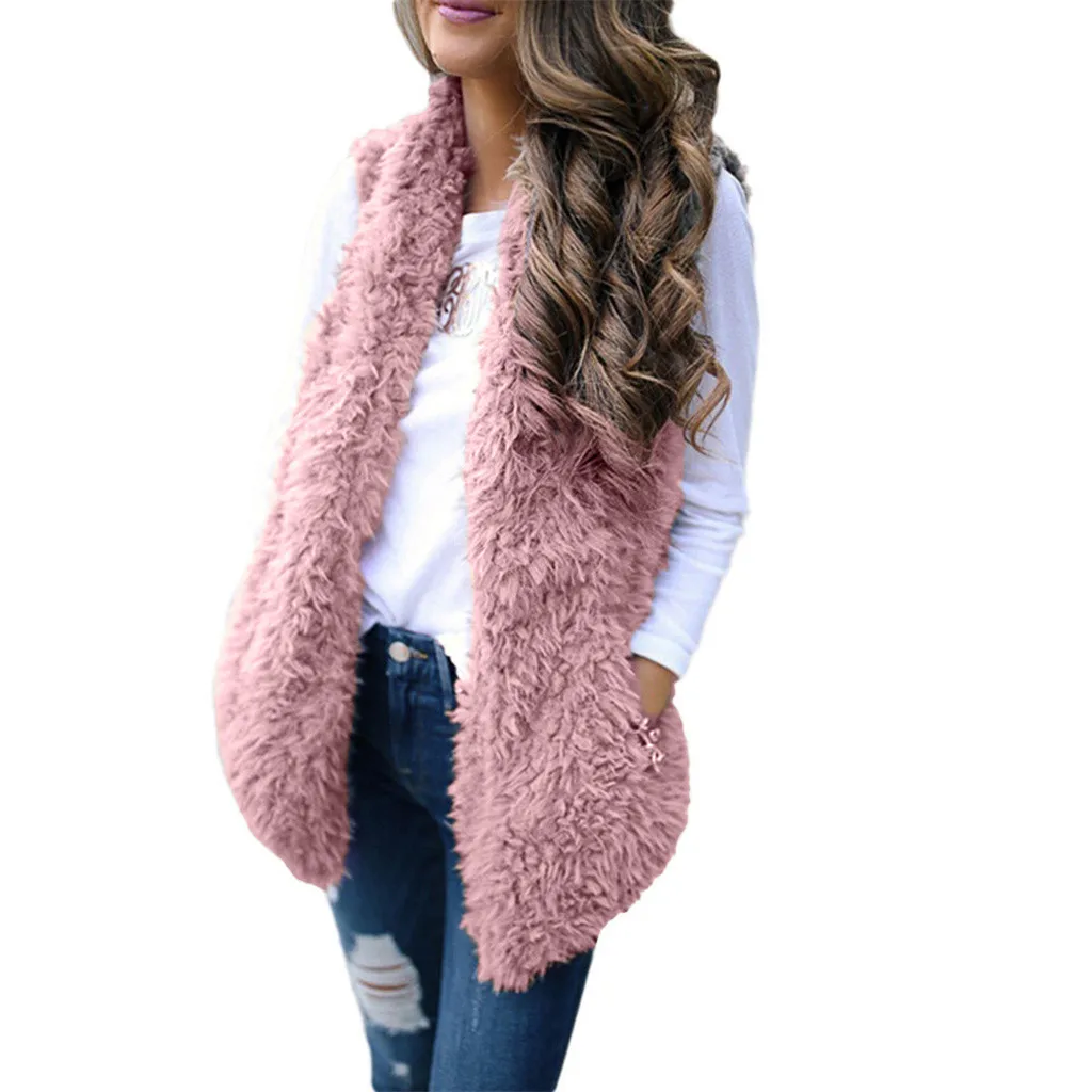 Зимний жилет для женщин, плюшевый женский жилет из искусственного меха, однотонный Повседневный теплый жилет без рукавов, куртка, теплый кашемировый кардиган # T2G