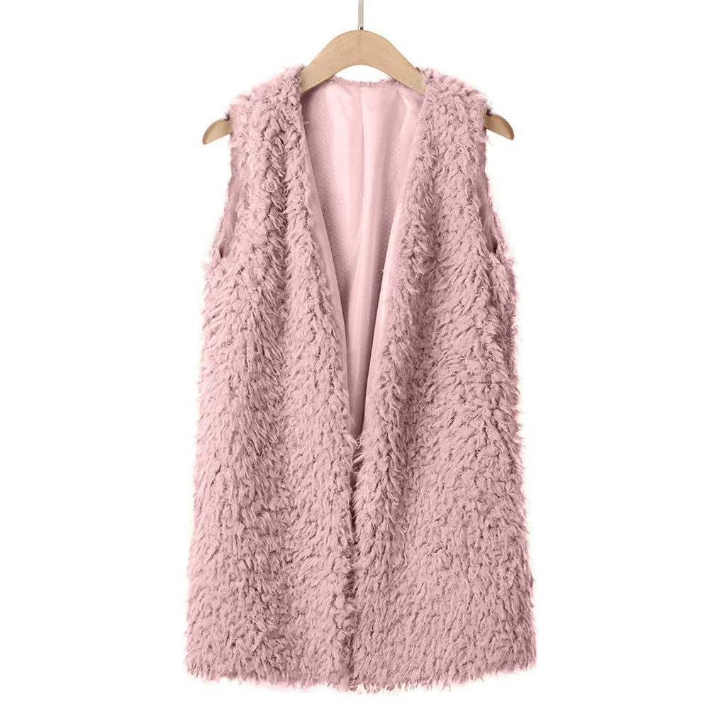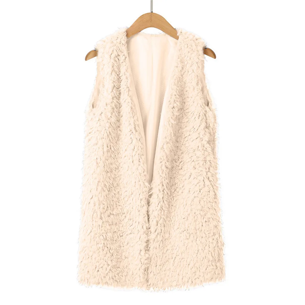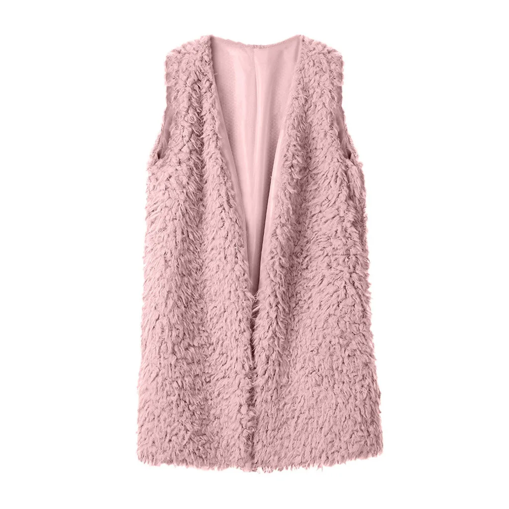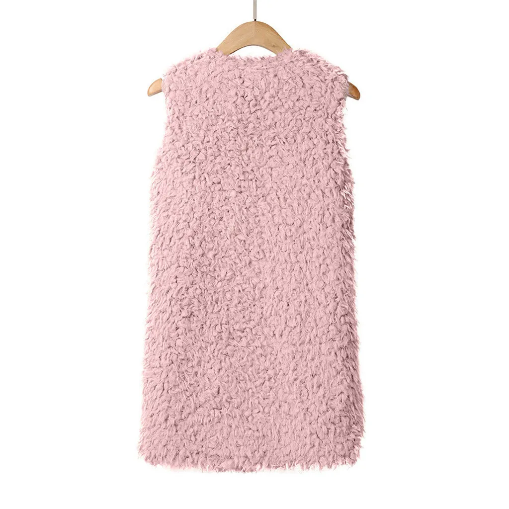 Зимний жилет для женщин, плюшевый женский жилет из искусственного меха, однотонный Повседневный теплый жилет без рукавов, куртка, теплый кашемировый кардиган # T2G