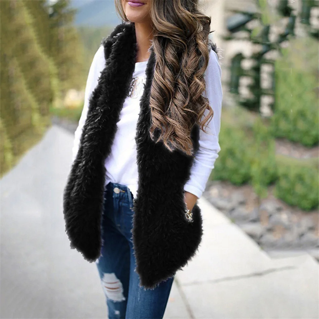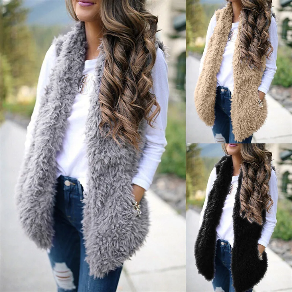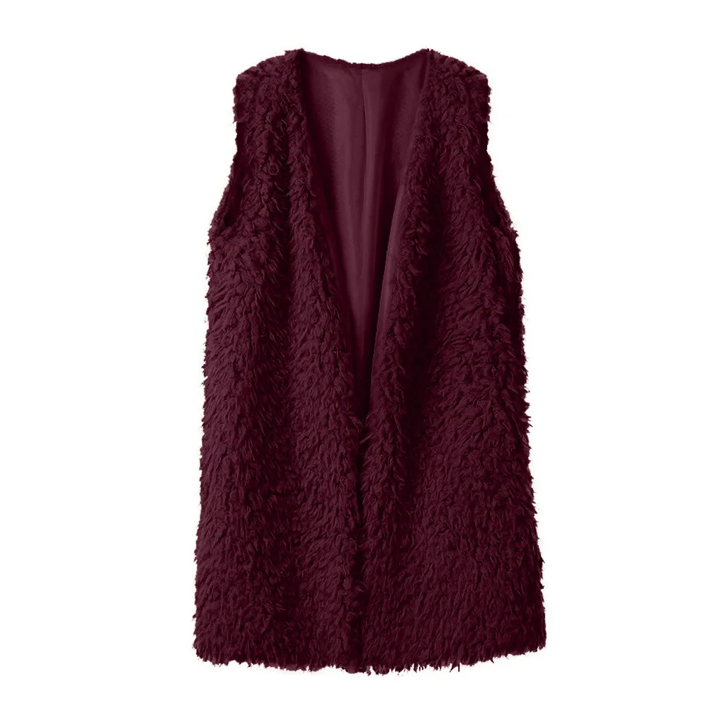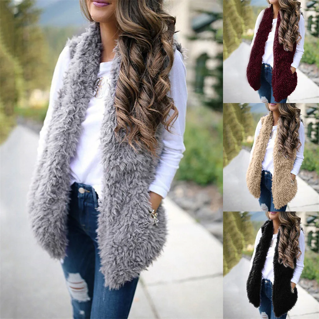 Зимний жилет для женщин, плюшевый женский жилет из искусственного меха, однотонный Повседневный теплый жилет без рукавов, куртка, теплый кашемировый кардиган # T2G