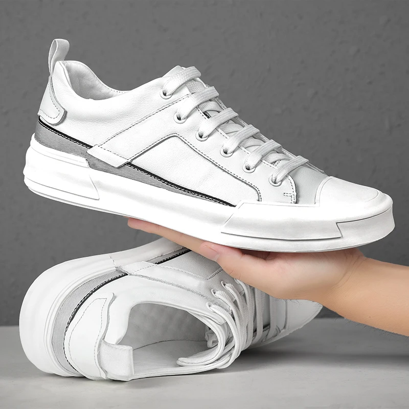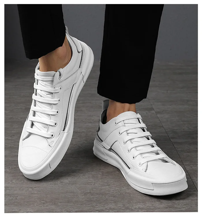 Кроссовки мужские из натуральной кожи, модная повседневная обувь для ходьбы, белые, осень 2020