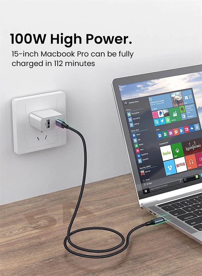 Кабель для быстрой зарядки, USB Type C-Type C, нейлоновый, 100 Вт60 Вт PD QC4.0 для Macbook, ipad, Samsung, S20, Huawei