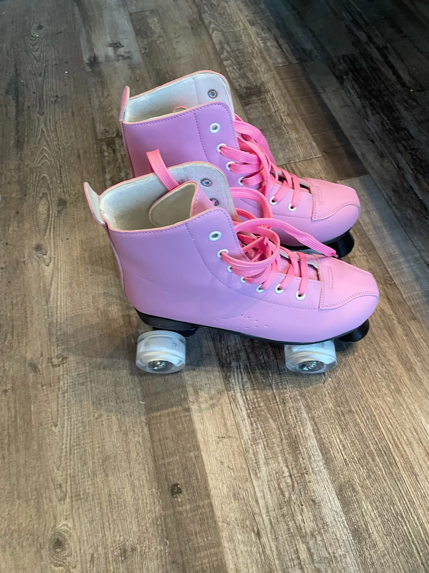 They came very fast less than 2 weeks comes with bag to put skates in. Idk why i thought they lit up I must have read wrong but still nice