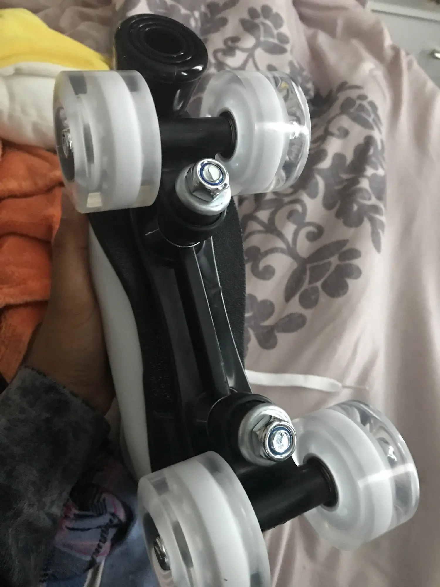 Хорошие ролики. Шли очень долго, доставка курьером на дом. При получении не светились 2 колеса на одном из роликов. Муж сказал что неправильно установлены колесики, переустановил, все засветилось.